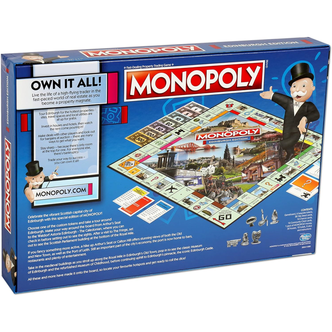 Let your family discover Edinburgh's most iconic landmarks with this special edition Monopoly game! Perfect for busy families who love mixing learning with fun, this board game brings the magic of Scotland's capital right to your living room. Trade and collect famous locations like Edinburgh Castle and the Royal Mile whilst teaching the kids about one of Britain's most historic cities.