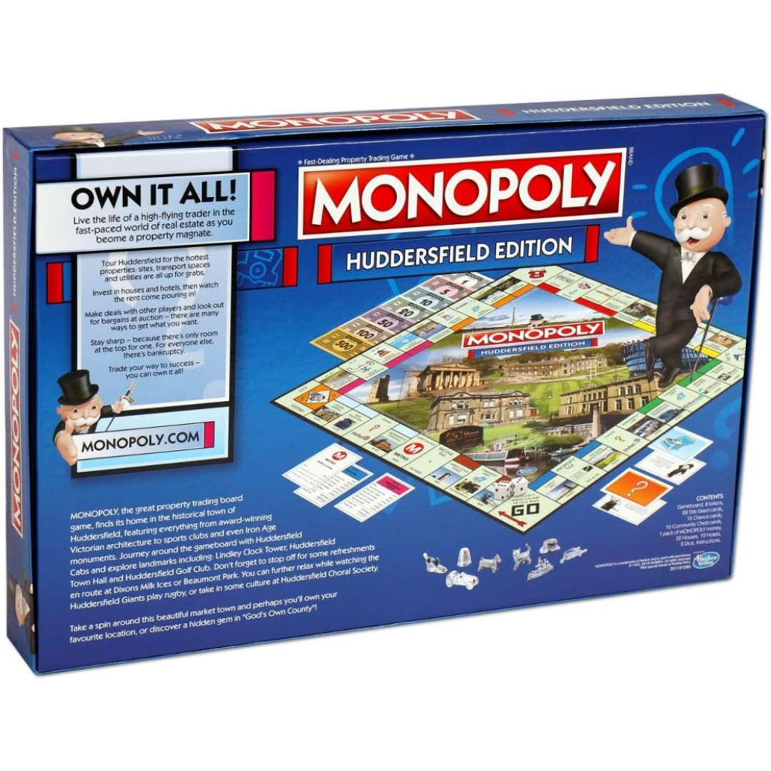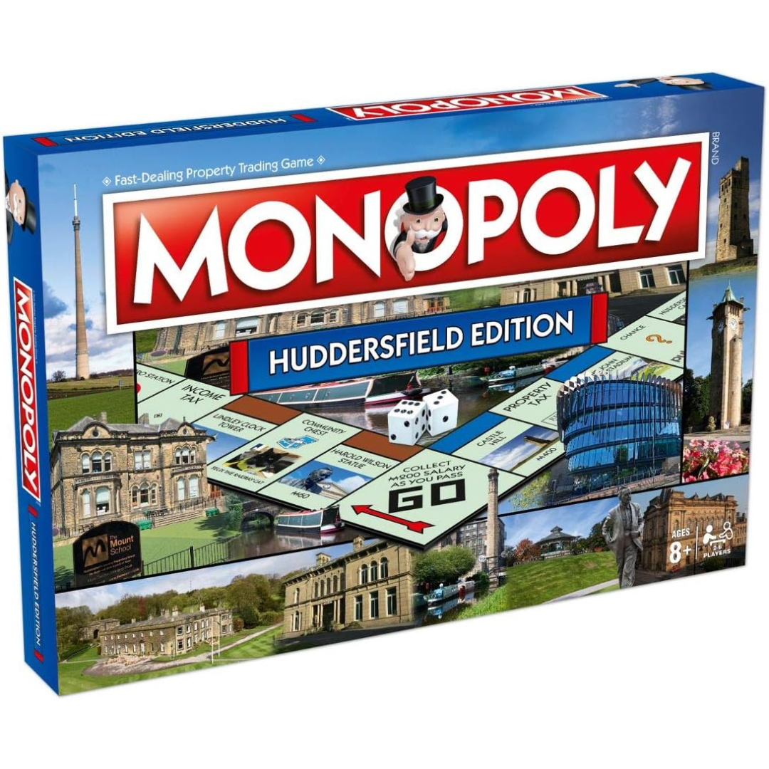 The world’s best family board game brings you the exciting Monopoly – Huddersfield Edition! Choose your favourite token and explore iconic local sites like Castle Hill, the Huddersfield Narrow Canal, and the University of Huddersfield. Buy, sell, and trade properties to build your fortune, but watch out for taxes, jail, and bankruptcy. Invest in houses and hotels to grow your empire and trade your way to success. This fast-dealing property trading game is perfect for family fun, offering hours of entertainment for all ages!