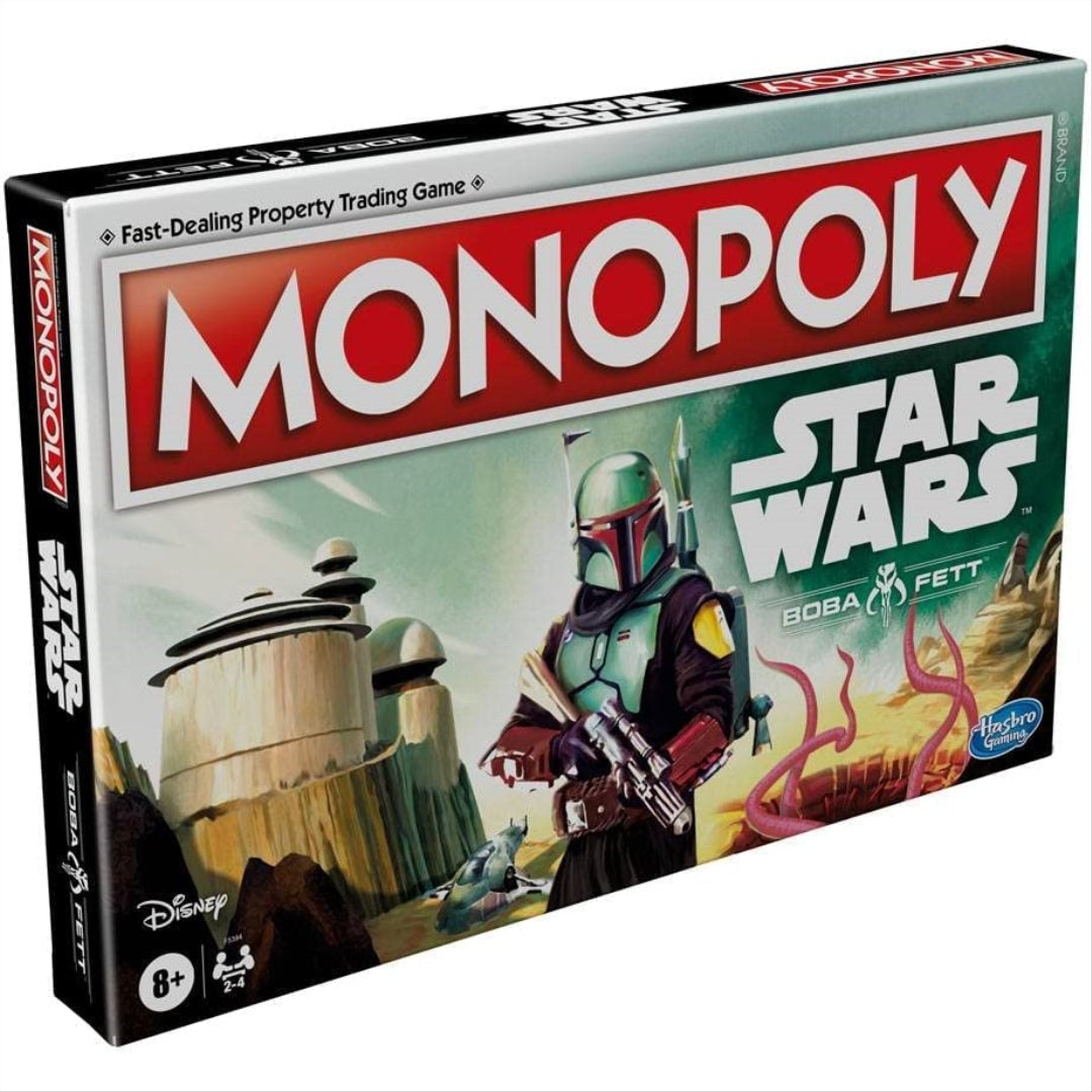 Perfect for family game nights and making memories without breaking the bank, this Monopoly Star Wars edition brings the galaxy's most notorious bounty hunter to your table! Featuring Boba Fett in both classic and modern poses, this board game lets kids (and parents!) aged 8+ collect characters, items, and imperial abilities while reliving epic moments from Star Wars Episodes V and VI, plus thrilling scenes from The Mandalorian.