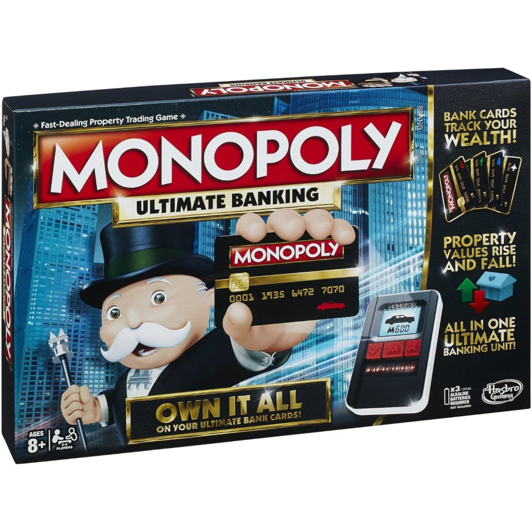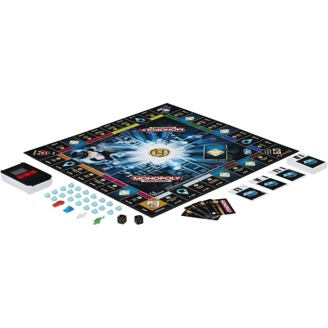 Enjoy the contemporary take on a timeless classic as you play the Monopoly Ultimate Banking Table Game. Bid farewell to currency and welcome the computerised financial system that oversees properties, gaming, and transactions. This version elevates family gaming evenings and get-togethers to new heights of enjoyment with its fast-paced action and engaging strategy. This vibrant and modernised version of the classic Monopoly game will have you buying, selling, and trading your way to success as you build up your fortune.