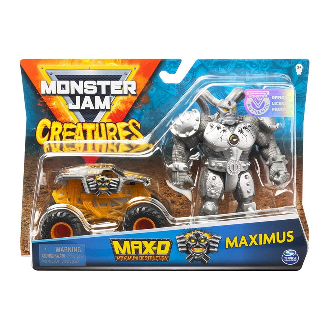 Monster Jam super roadster with enormous wheels is about 13 centimetres tall.
