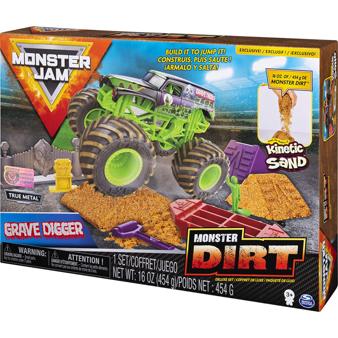 Get ready for epic monster truck mayhem with this incredible Monster Jam Grave Digger set! Perfect for creative play sessions, this deluxe pack includes a mighty Grave Digger truck and a generous 454g of Monster Dirt sand to build the ultimate off-road adventure.