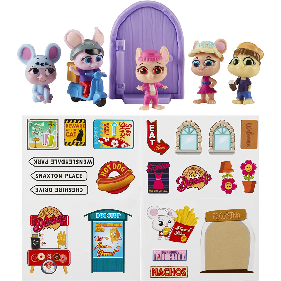 Hop into a world of whimsical wonder with this magical Mouse in the House 5-pack collectible set! Perfect for creative play sessions and imaginative adventures, each pack features five uniquely dressed mice with their own special look and accessories. Plus, you'll get a charming mouse-hole door and glow-in-the-dark stickers to create your own enchanting mousescape.