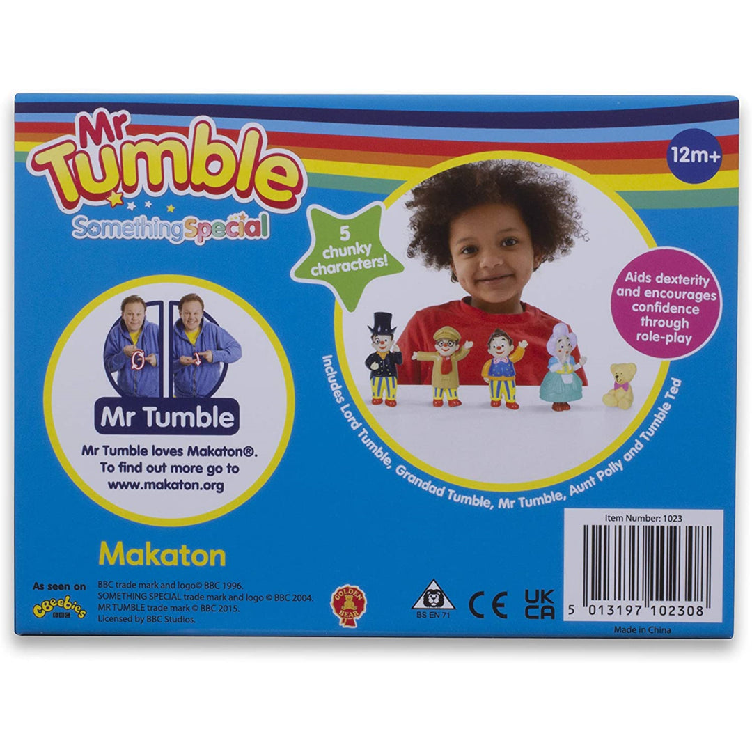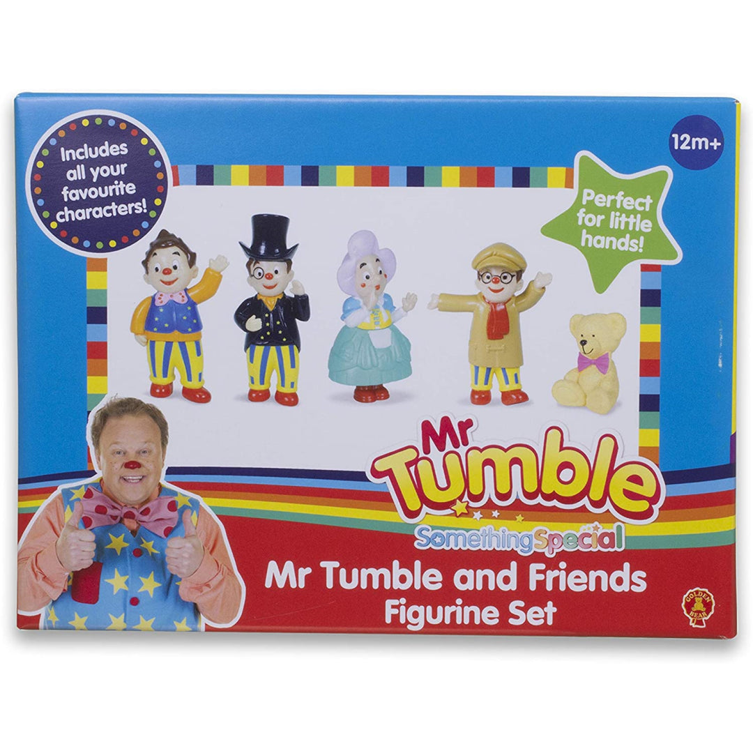 Mr Tumble, Lord Tumble, Grandad Tumble, Aunt Polly (8cm), and Tumble Ted are included. From the CBeebies episode Something Special. 5 finely detailed, vividly coloured miniatures. It's just the right size for little hands and fosters creative role play.