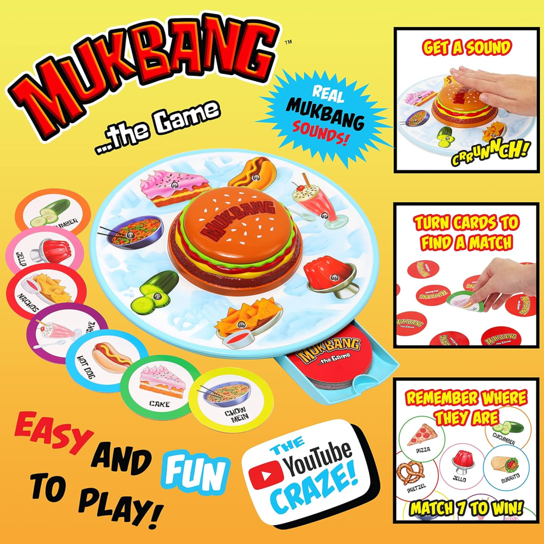 Get ready for a hilarious family game night with MukBang - the memory game that brings food sounds to life! Perfect for those evenings when you want quality family time without breaking the bank. This clever game combines memory skills with funny food noises that'll have everyone giggling.