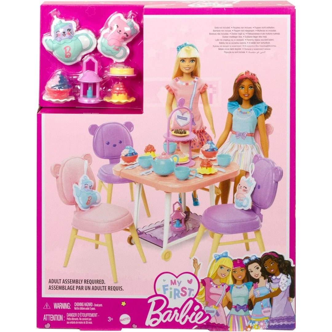 Get ready for a delightful tea party experience with this Barbie playset that's perfect for little ones starting their imaginative play journey! The clever treat cart transforms into a party table, featuring a durable plug-and-play surface that's built to withstand enthusiastic play sessions.