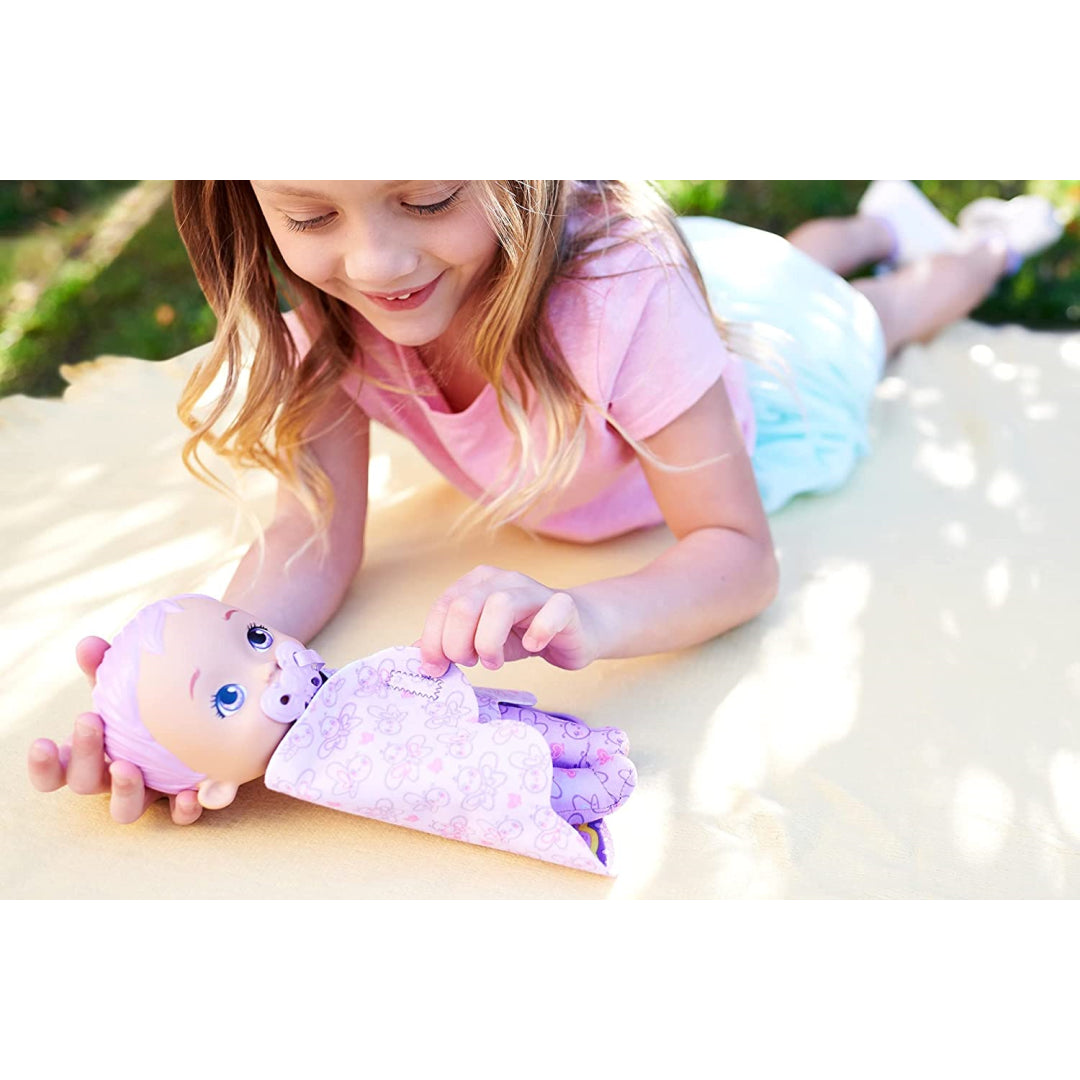 These My Garden Baby dolls are whimsical, soft, and cuddly, making them ideal first dolls for tiny ones. Blue, purple, and pink dolls are available.