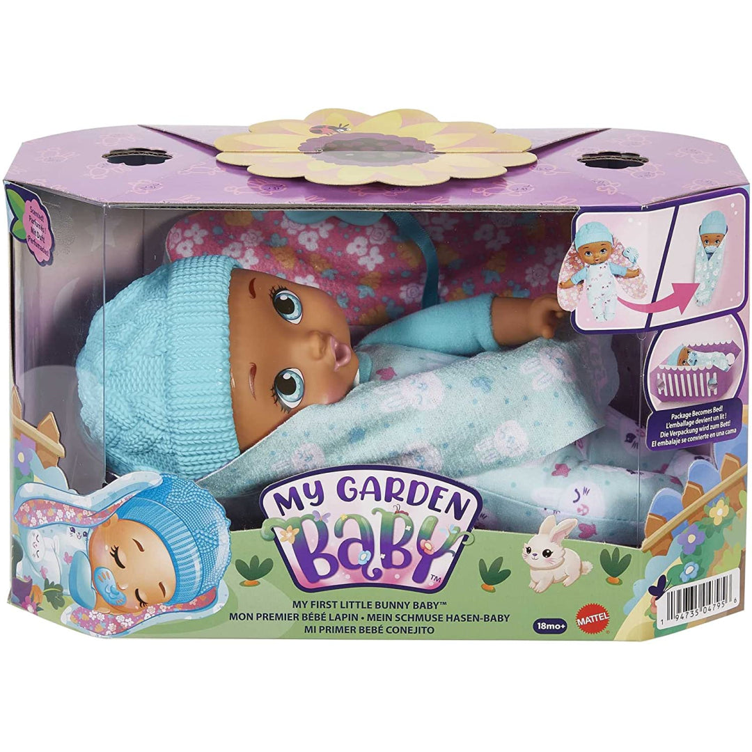 Add a touch of snuggly sweetness to your little one's world with this adorable My Garden Baby bunny doll. Perfect for busy parents seeking quality, affordable toys that bring joy, this blue-hatted bunny is designed for tiny hands to cuddle and love. The delightful floral scent and super-soft velvet ears make this bunny extra special, while the clever swaddling feature adds a nurturing element to playtime.