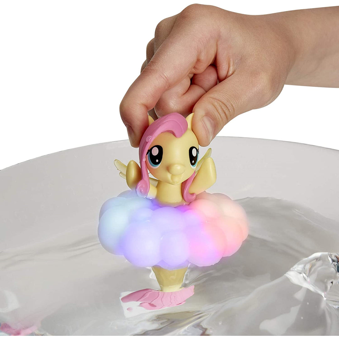 Light up bath time or water play with this magical My Little Pony Fluttershy Fleet figure! Perfect for entertaining little ones whilst being kind to your wallet, this delightful water toy brings extra sparkle to splash time. Pop Fluttershy into the water and watch as her inner tube magically illuminates with rainbow colours. Your little ones can also activate the dazzling light show themselves with a simple press of the button at the bottom.