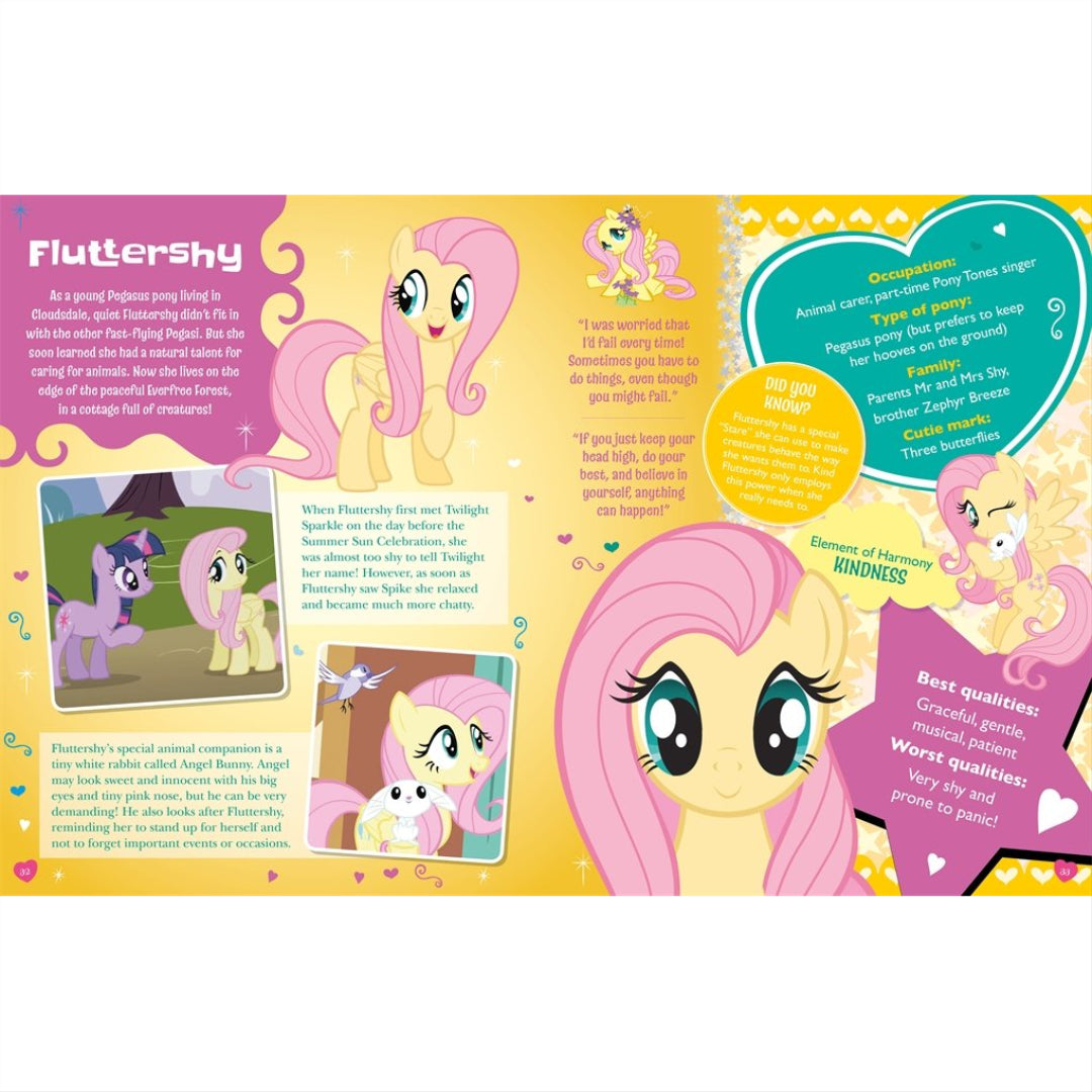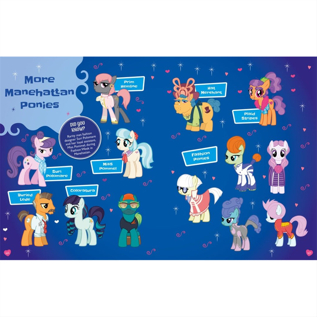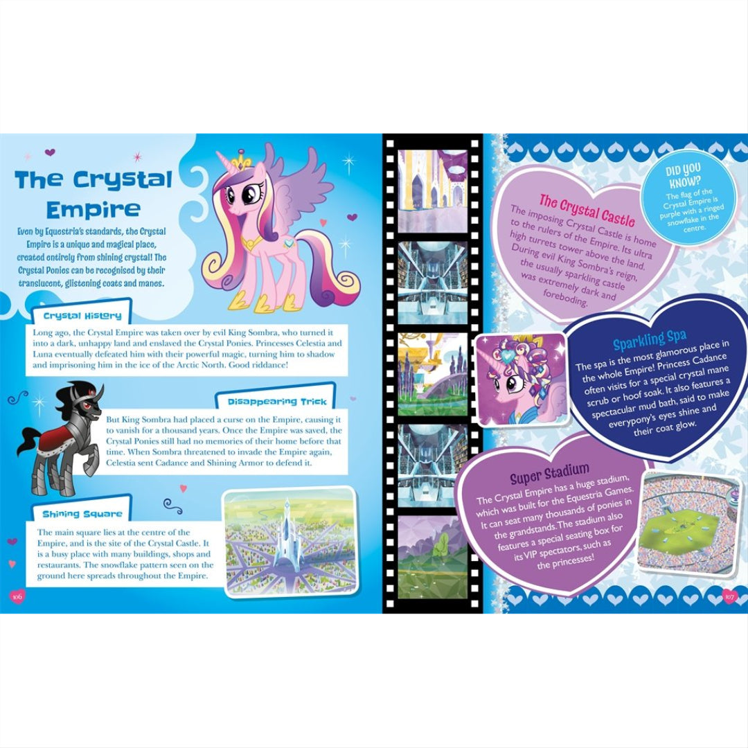 Greetings from THE official, comprehensive guide to the enchanted realm of Equestria! Discover important myths and tales, travel Canterlot and beyond, learn about everyday life in Ponyville, get the inside scoop on all your favourite ponies, and read about Twilight Sparkle and her pals' most thrilling escapades. This is the only guide you'll ever need to explore this incredible world of magic, friendship, and fun. It contains amusing facts, best-kept secrets, quotations, montages, and MUCH more.