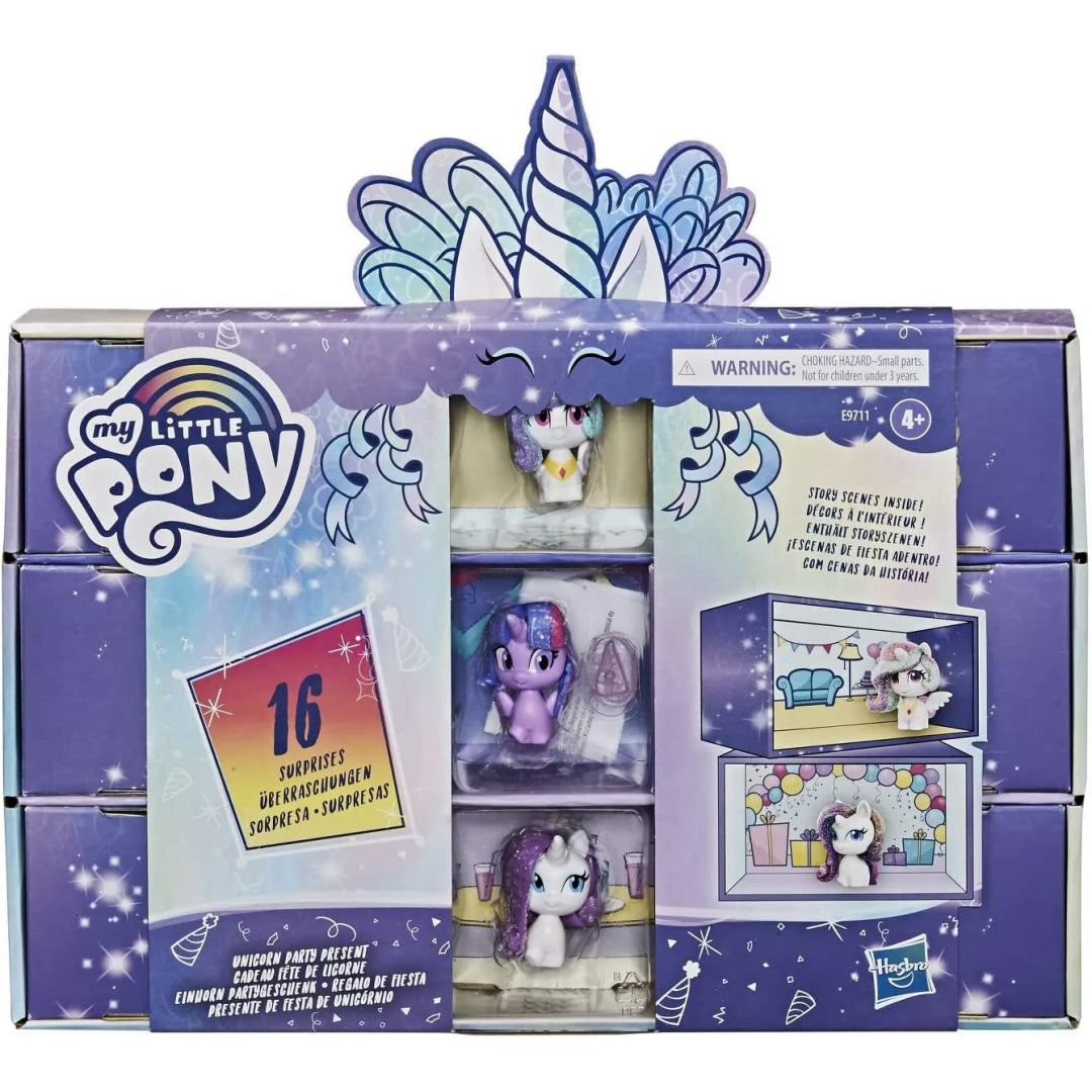 The My Little Pony Unicorn Party Present Mini Figure 12-Pack comes with eight accessories to go along with it. Pony figurines measuring 1.5 inches tall include Princess Celestia, Twilight Sparkle, and Rarity, among others. Inside is a Scene from the Story. Obtain it right now.