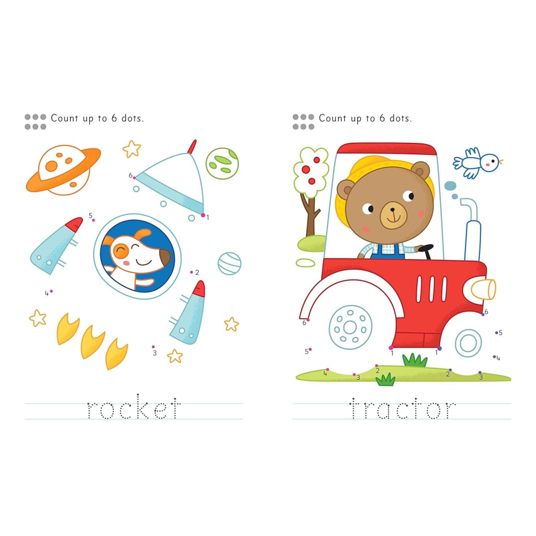 Perfect for tiny hands and growing minds, this entertaining dot-to-dot activity book makes early learning a breeze! Your little one will love connecting the numbered dots to reveal charming vehicles and things that go, while building number skills and fine motor control. Each page features words to trace, helping your budding writer develop their early literacy skills through play.