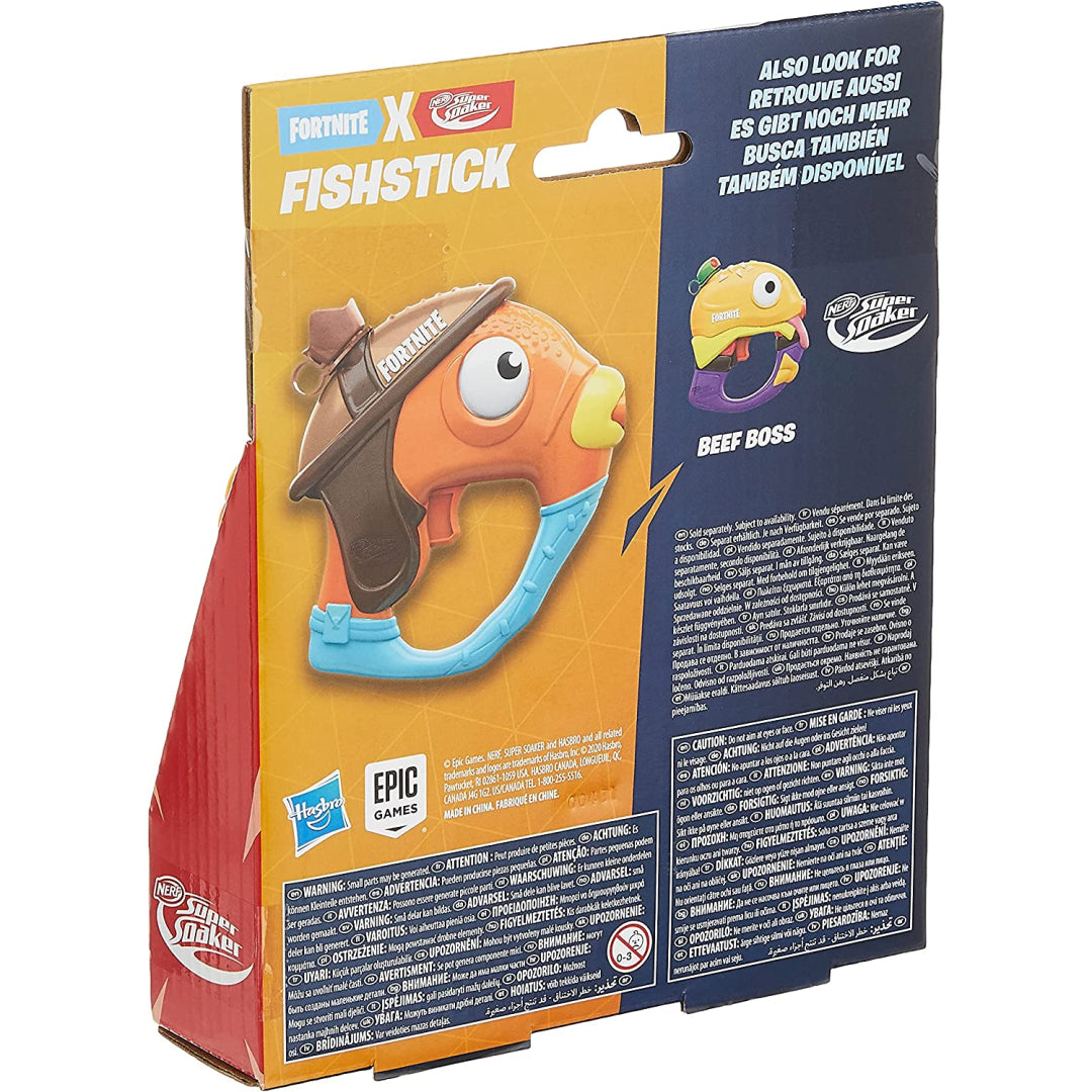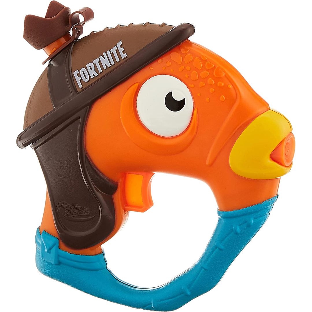 With this little Nerf Fortnite Super Soaker water cannon, create a tremendous splash! It closely resembles the appearance of the famous video game character Fortnite Fishstick. It may be filled with water to start a water blasting party. Close the cap after filling the tank, then pull the trigger to release a stream of water. You may start a water fight practically anywhere, at any time, thanks to the diminutive size's ease of portability. For backyard fights and outdoor gatherings with family and friends, look for the Nerf Super Soaker Fortnite water blasters (each sold individually). These also make fantastic presents and party favours.
