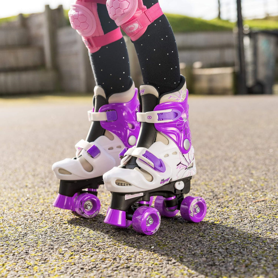 These skates may grow with your children because of the easy slide adjustable straps and secure lock boot buckles.