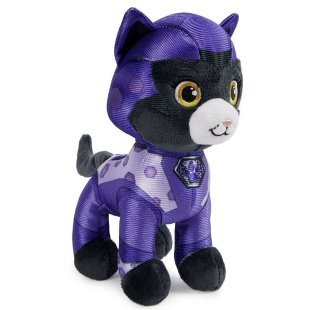 Your little ones can zoom into naptime or playtime adventures with this super-soft Paw Patrol Cat Pack hero! Meet Shade, the newest feline friend measuring a perfect 8 inches tall, perfect for little hands to hold and love. Sporting her signature metallic-purple helmet and armour, complete with the official Cat Pack team badge, this cuddly companion stands ready for action in a heroic pose.