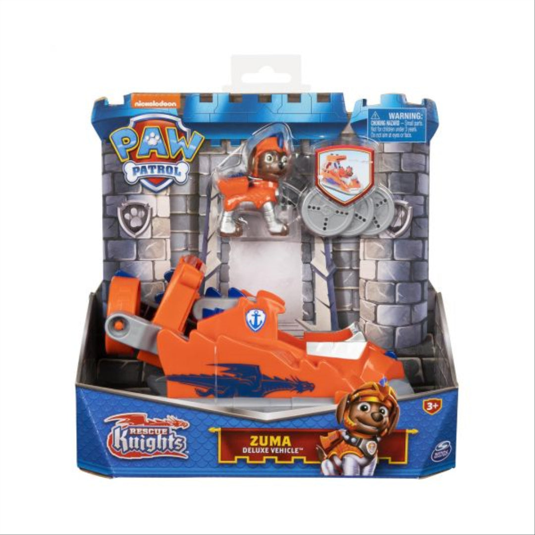 Get ready for epic dragon-inspired adventures with Paw Patrol's Zuma and his amazing morphing Rescue Knights vehicle! Perfect for your little hero's collection, this value-packed set includes a Zuma action figure decked out in his knight gear, ready to save the day in Barkingburg.