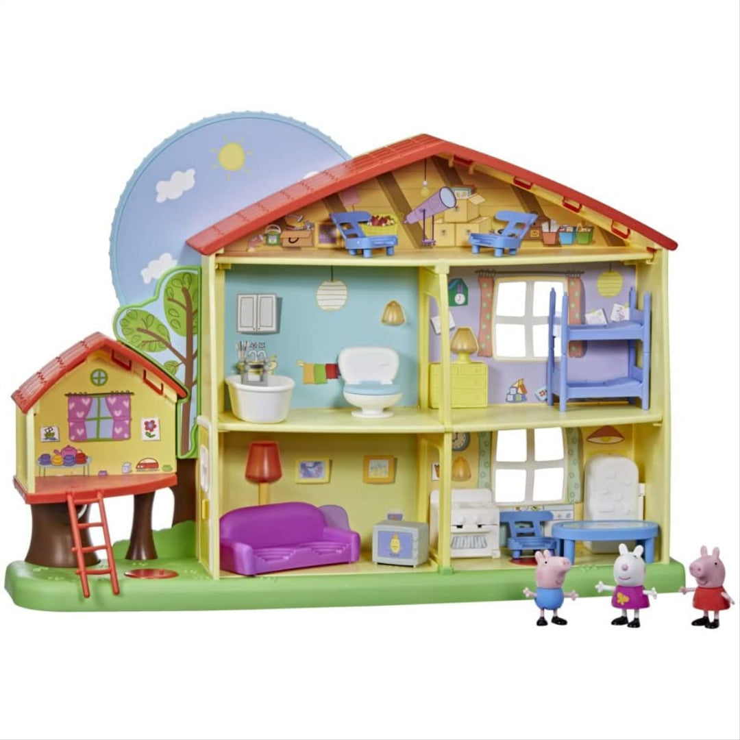 Preschoolers can act out household adventures with Peppa Pig as if it were an episode of the popular animation series with this feature-rich 5-room playhouse. Kids may change the home from day to night mode with a turn of the dial; the playset reacts with mode-appropriate narration, voice, sound effects, and even lighting. Music, chuckles, and, of course, the odd snort interrupt the day-to-night cycle.