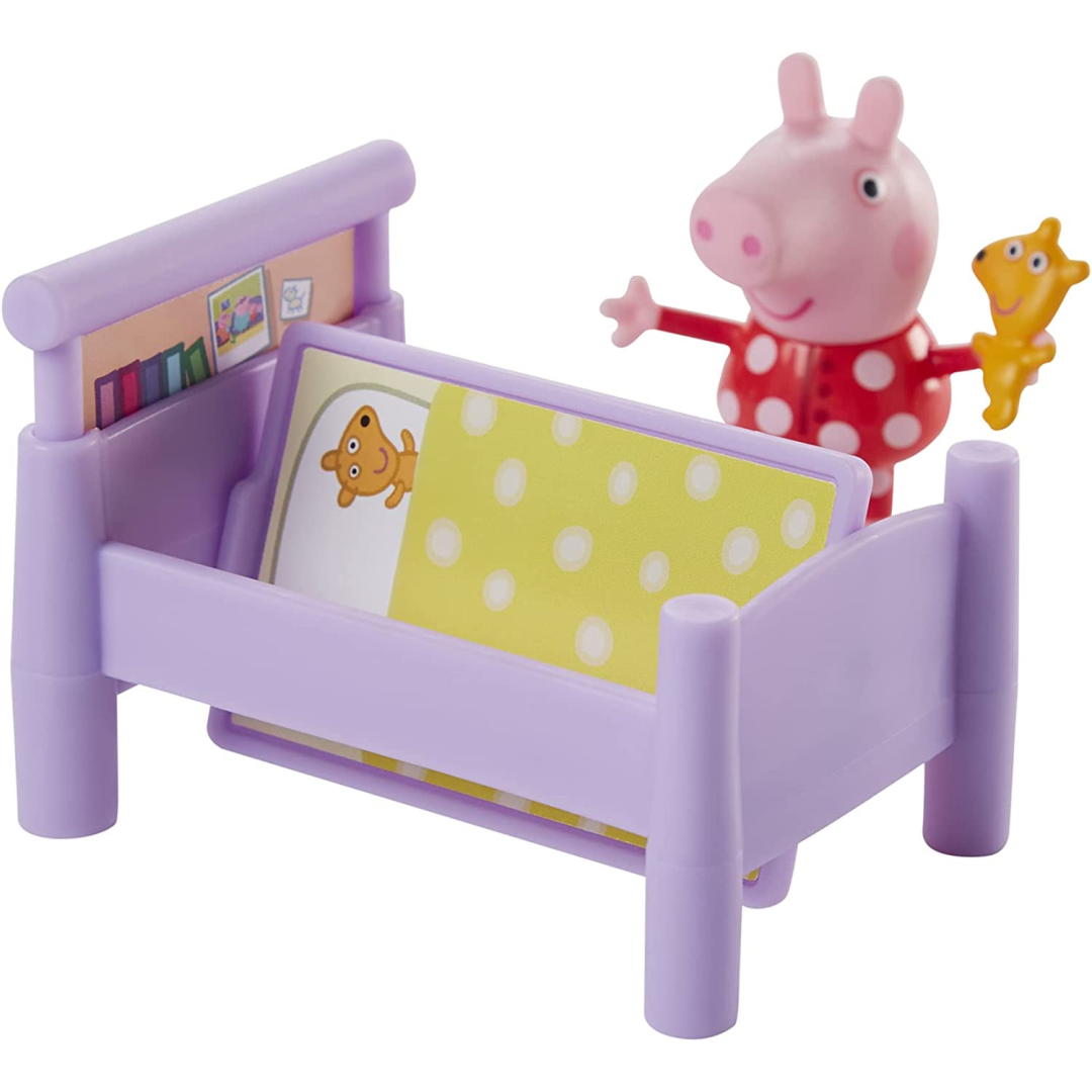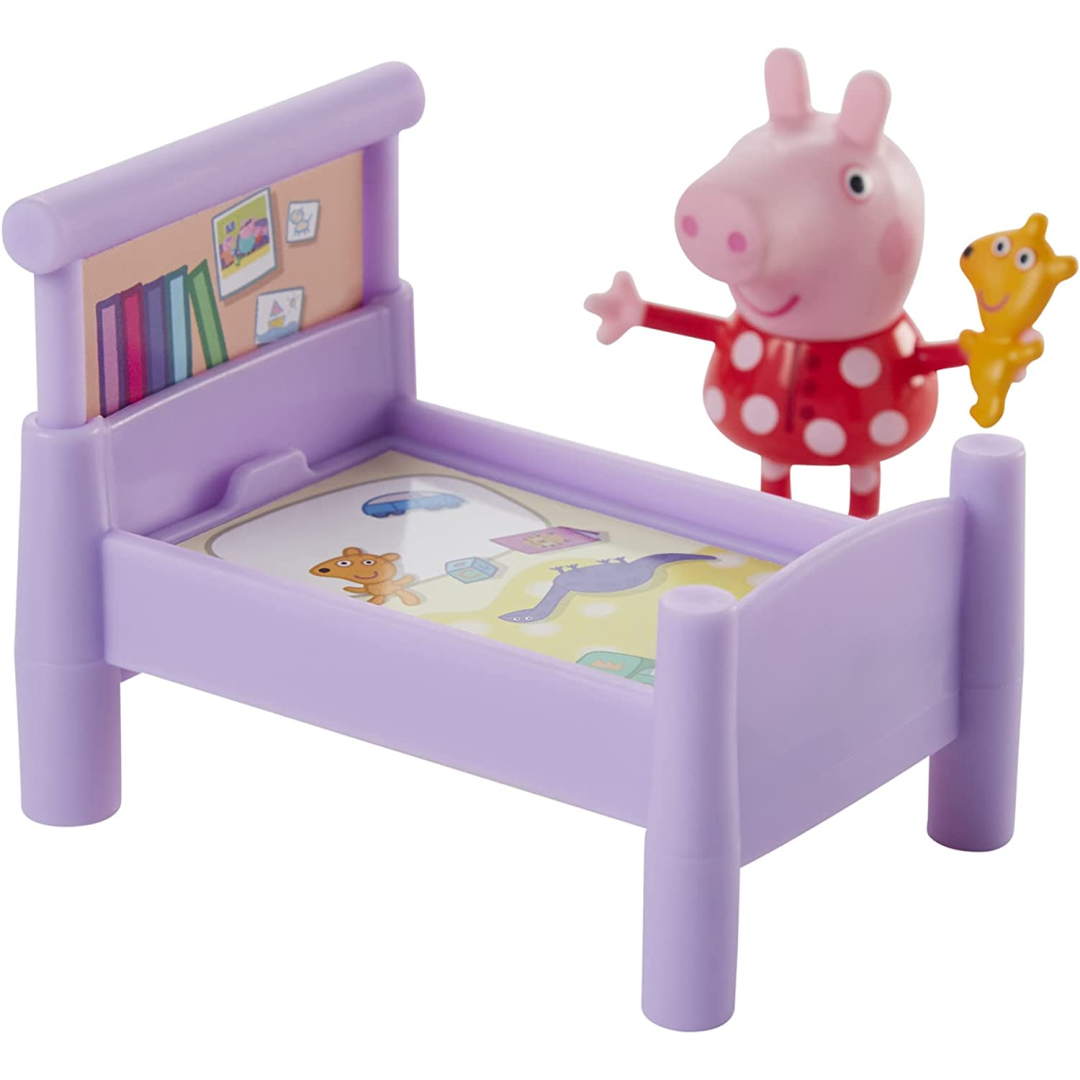 Get ready for magical bedtimes with this adorable Peppa Pig bedtime set! Perfect for your little one's imaginative play, this value-packed set includes a 3-inch Peppa figure dressed in sweet polka-dot pyjamas, plus five bedtime accessories - a cosy bed, wardrobe, dollhouse, radio, and vanity.