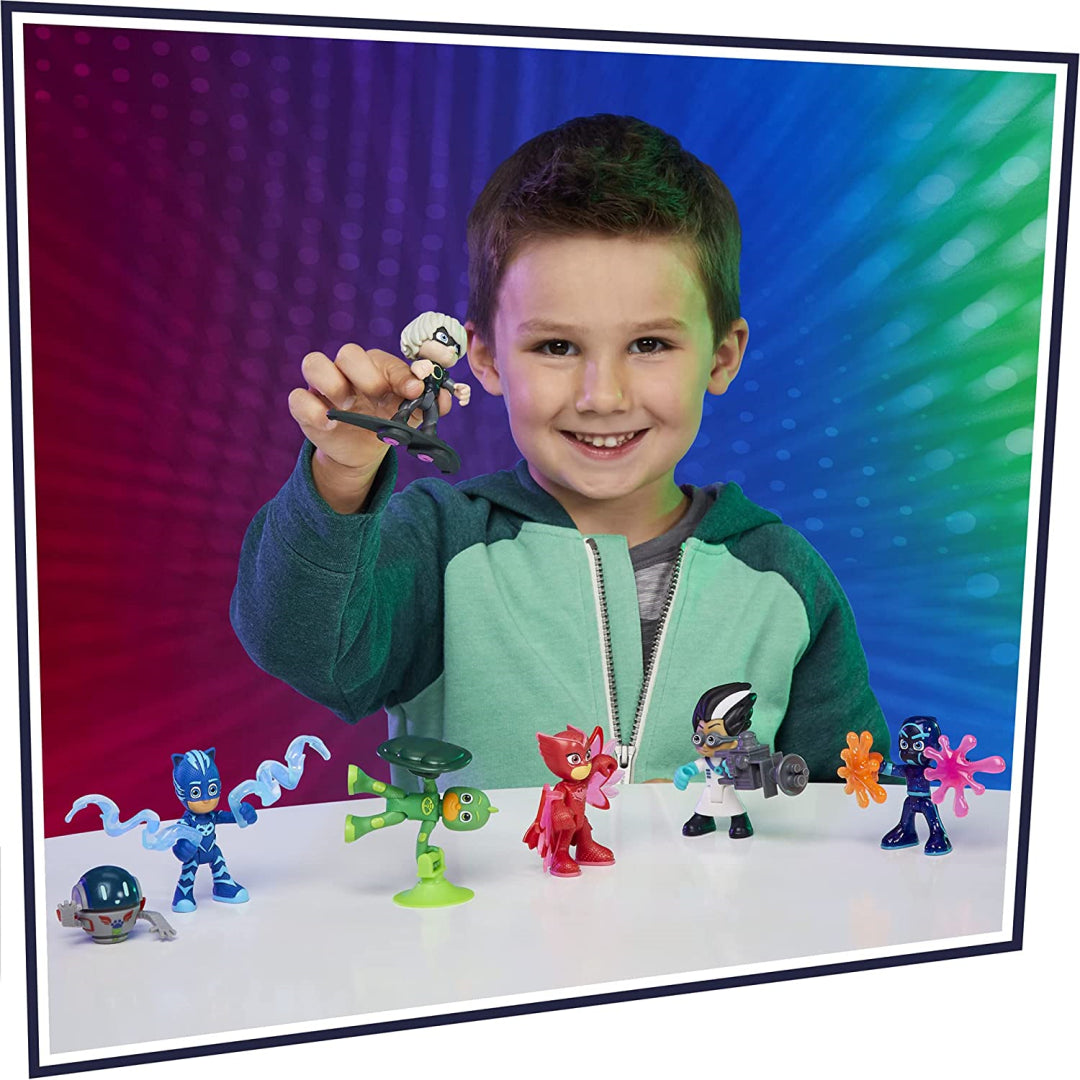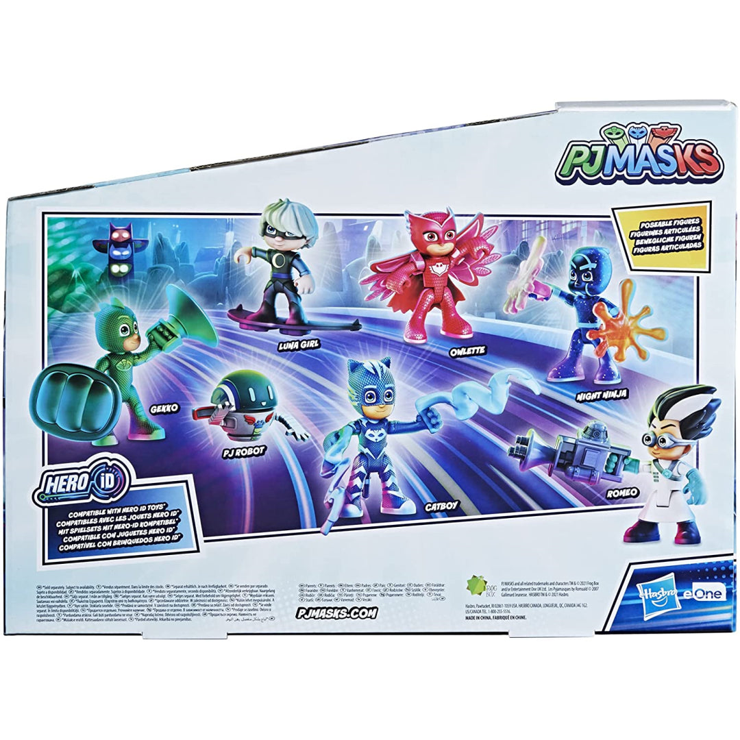 With PJ Masks toys, playtime has just become a whole lot more exciting! The PJ Masks Hero and Villain Figure Set puts the Disney Junior show's joy and adventure in the hands of youngsters. 7 PJ Masks action figures, featuring characters like Catboy, Owlette, and Gekko, as well as 10 amusing accessories, will delight preschoolers aged 3 and up. For maximum narrative power, little, poseable figurines genuinely grip and wear their accoutrements. Hasbro Hero ID-equipped PJ Masks playsets (each available individually, subject to availability) detect and respond to 3-inch PJ Masks figurines with lights, noises, or both, and are compatible with the figures.