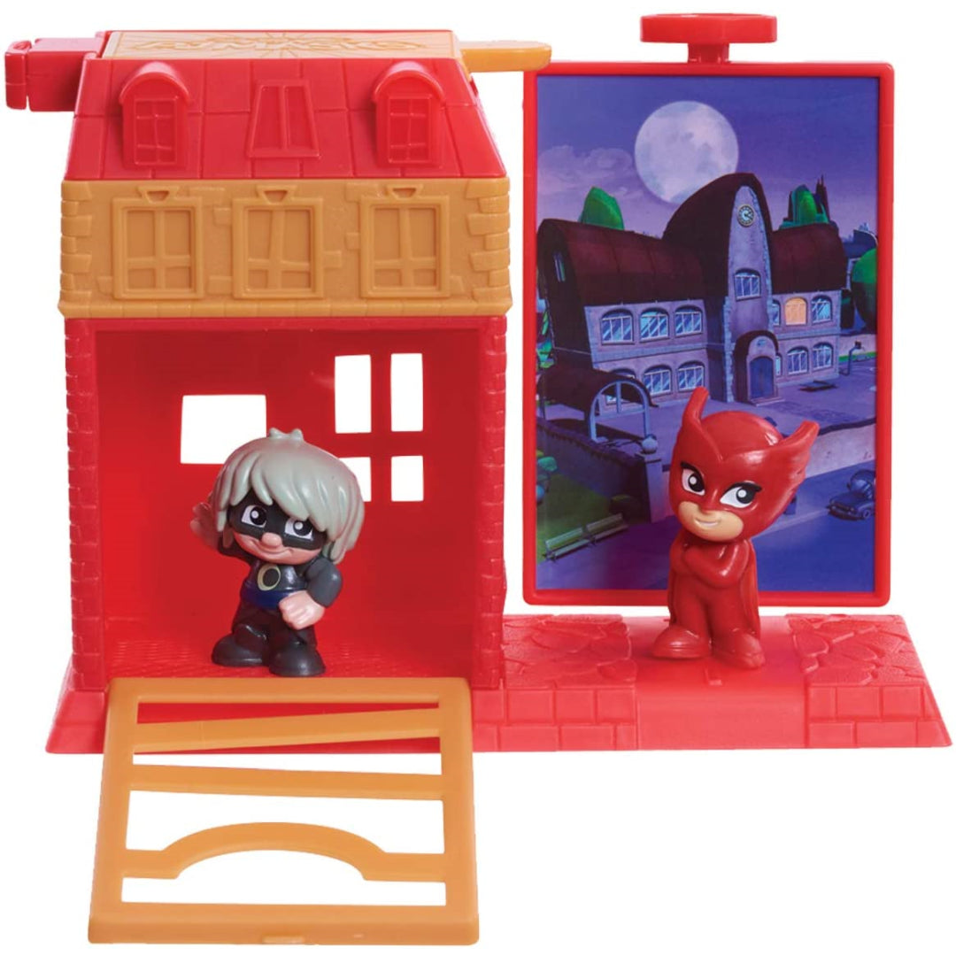 Transform bedtime into playtime with this amazing PJ Masks adventure set! Perfect for little superheroes who love acting out their favourite nighttime adventures, this compact playset features Owlette and Luna Girl ready for action. Let your little one's imagination soar as they recreate thrilling scenes from the show – launch Luna Girl from the rooftop with a simple lever pull, or activate the sneaky trap door to foil her plans!