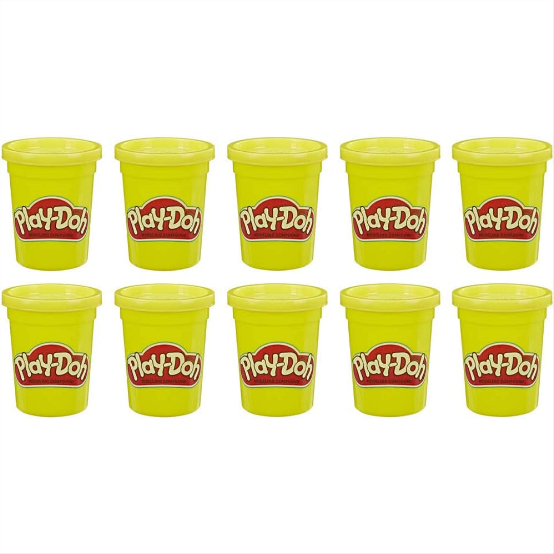 This twelve-pack of yellow Play-Doh compound comes with huge cans of Play-Doh, each of which has four ounces of the compound.