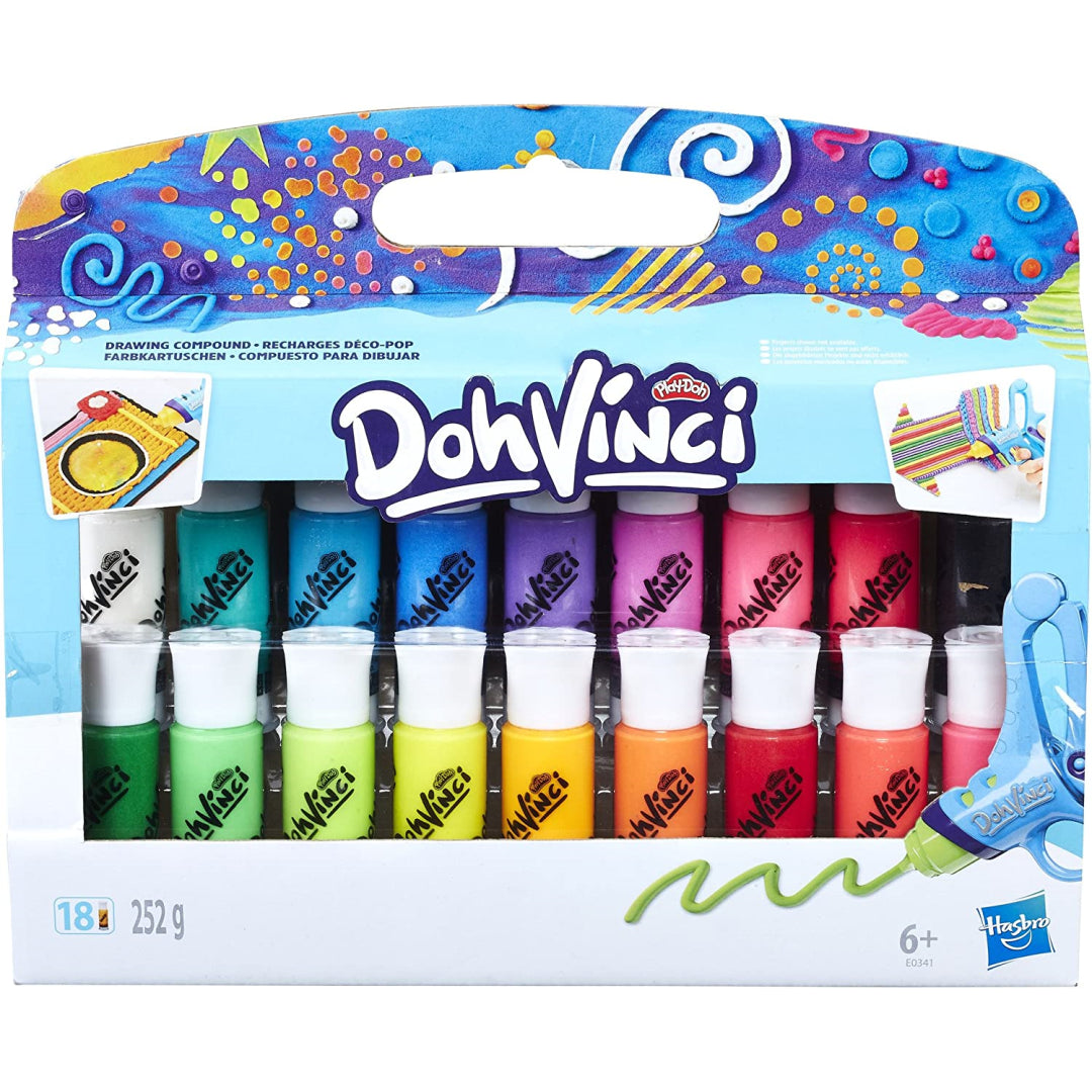 Your 3D doh-vinci creations are going to have a lot more colour thanks to the 18 tubes of doh Vinci design that you have. Both boys and girls will have the ability to produce multicoloured 3D masterpieces using the Doh-Vinci system. Contains 18 tubes of drawing paste designed by DohVinci.