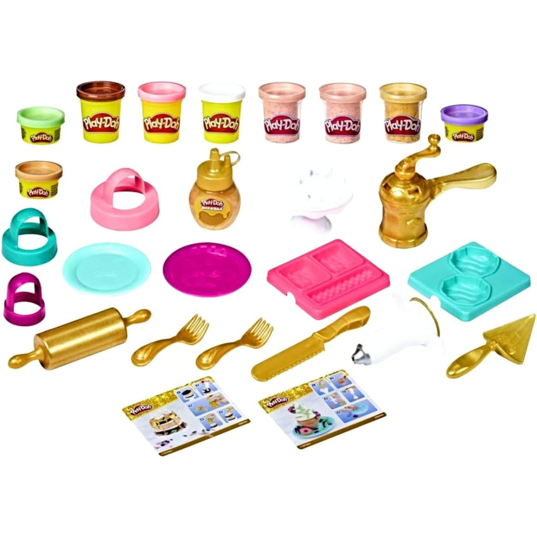 The Play-Doh Gold Star Baker Playset includes an array of moulds, cutters, and tools that help develop fine motor skills while encouraging creative expression. The signature squishy compound that kids love provides endless opportunities for make-believe baking adventures.