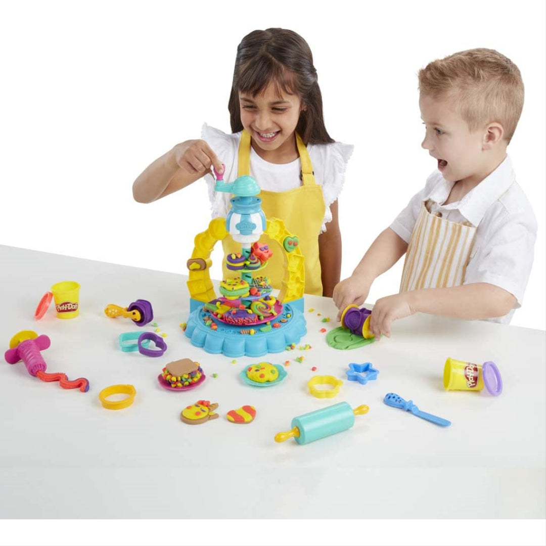 It's a Play-Doh cookie tower that sprinkles crazy things all over your masterpieces as you make them! Use the biscuit cutters, moulds, and other tools to create over 15 unique biscuit forms, and then go nuts with the decorating! This biscuit toy baking set is designed for children aged 3 and above, and it allows budding chefs to let their imaginations run wild. This play food set is a towering tower of imaginative fun, standing at a height of 12 inches.