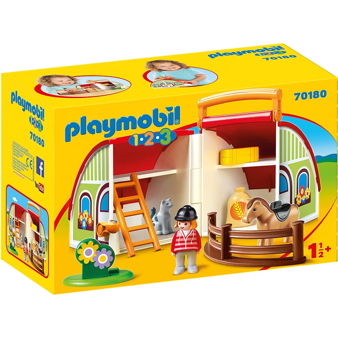 Perfect for little hands and growing imaginations, this portable Playmobil farm set brings endless adventures wherever you go! The two-storey farmhouse comes complete with adorable animal friends - a friendly cat and a majestic horse to care for. Your little one will love climbing the ladder to reach the top floor, creating their own special farmyard stories.