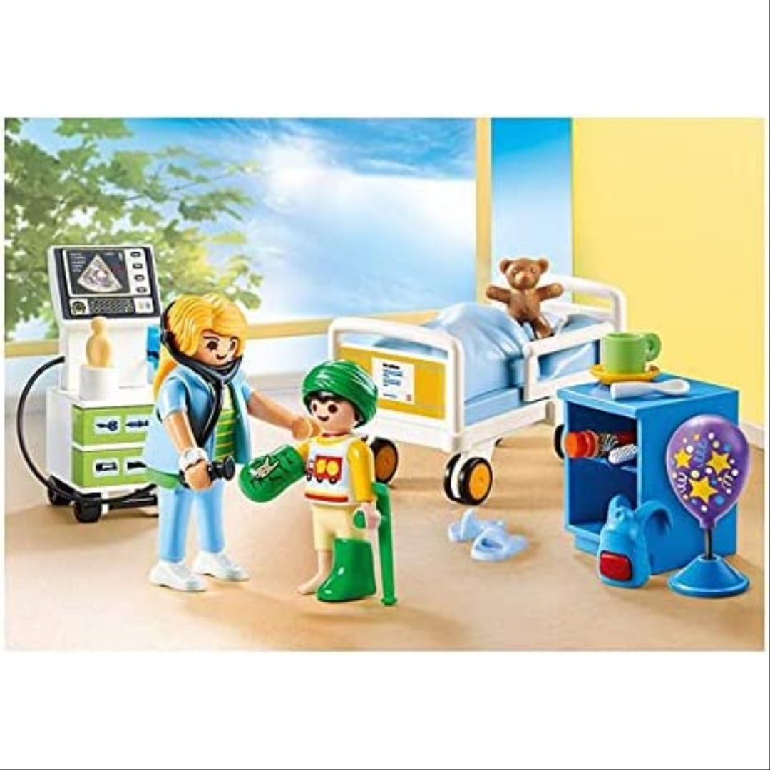 The Playmobil figure representing a youngster is all set to go for a nap in the hospital room designed to seem like a children's ward, complete with a hospital bed that has been made up. Even though there are a lot of interesting things to look at and play with at the medical facility, the detachable side rails will make sure that the young patient remains in bed throughout the night so that they can get a good night's sleep. The patient's head is covered in gauze, and adhesive plasters are used to cover his whole body. Splints are applied to the patient's arm and leg. At this point, the only thing that the young patient needs is a restful night's sleep. Little explorers and heroes can look forward to exciting adventures filled with realistic figures and a vast assortment of PLAYMOBIL accessories.
