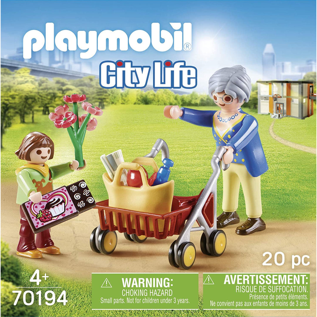 The PLAYMOBIL City Life collection has a variety of different settings, such as a neighbourhood, a shopping mall, and a park, all of which provide a wealth of activities and secrets to uncover. The miniature figures may be transferred to the PLAYMOBIL hospital in the PLAYMOBIL ambulance in the event that anything goes wrong in the midst of the hustle and bustle of daily life. In this scene, the jovial grandma and her granddaughter are having a wonderful time together.