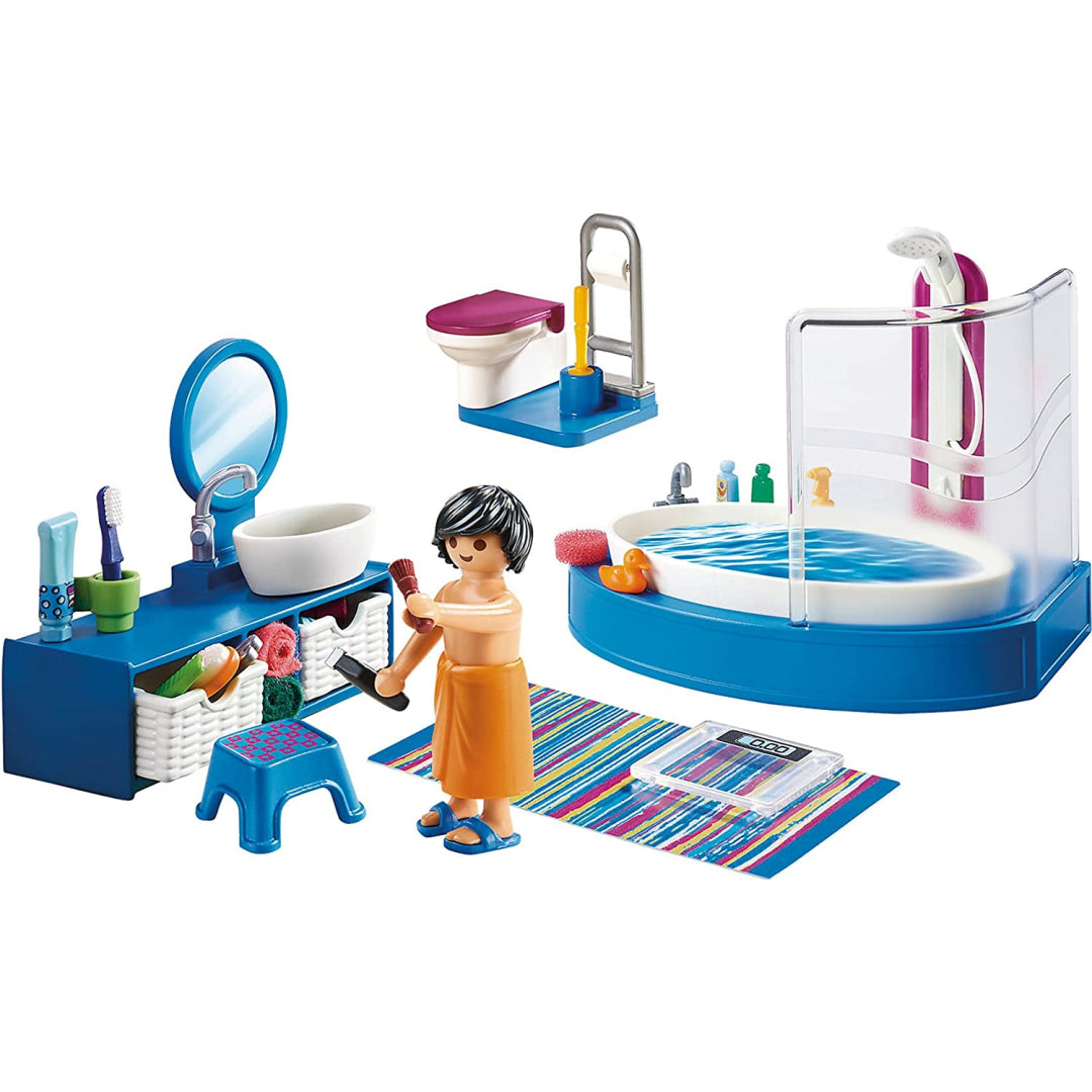Even the youngest children have fun getting ready for the day while using the PLAYMOBIL bathroom. With the convenient stool, both the sink and the mirror are within easy reach, making it possible for anyone to begin cleaning, washing, or combing their hair. The washing cupboard has enough room to store all of the utensils that are used in the bathroom.