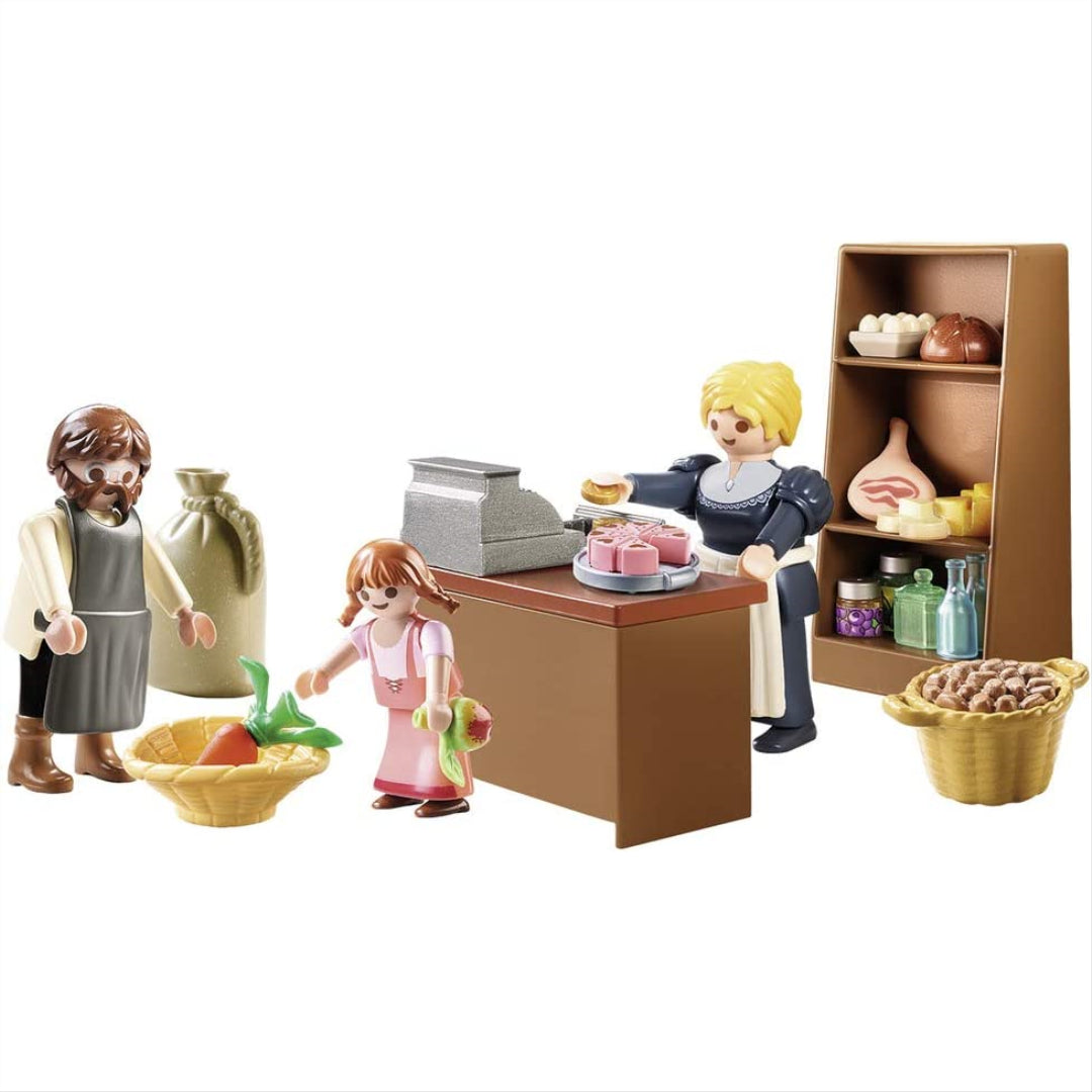 Playmobil set number 70257 allows you to explore Heidi's world. Heidi Keller's Village Shop playset. The coins that are included can be stored in the easily accessible till that comes with the set. There is space available for stock storage in the desk that is located underneath the cash register. Possible items include jam, bread, and eggs. There is a shelving unit that can store cheese, cake, and other items, and the purpose of this is to create an attractive display of delicious food. Theresa and Keller, complete with an apron that can be removed, are also included.