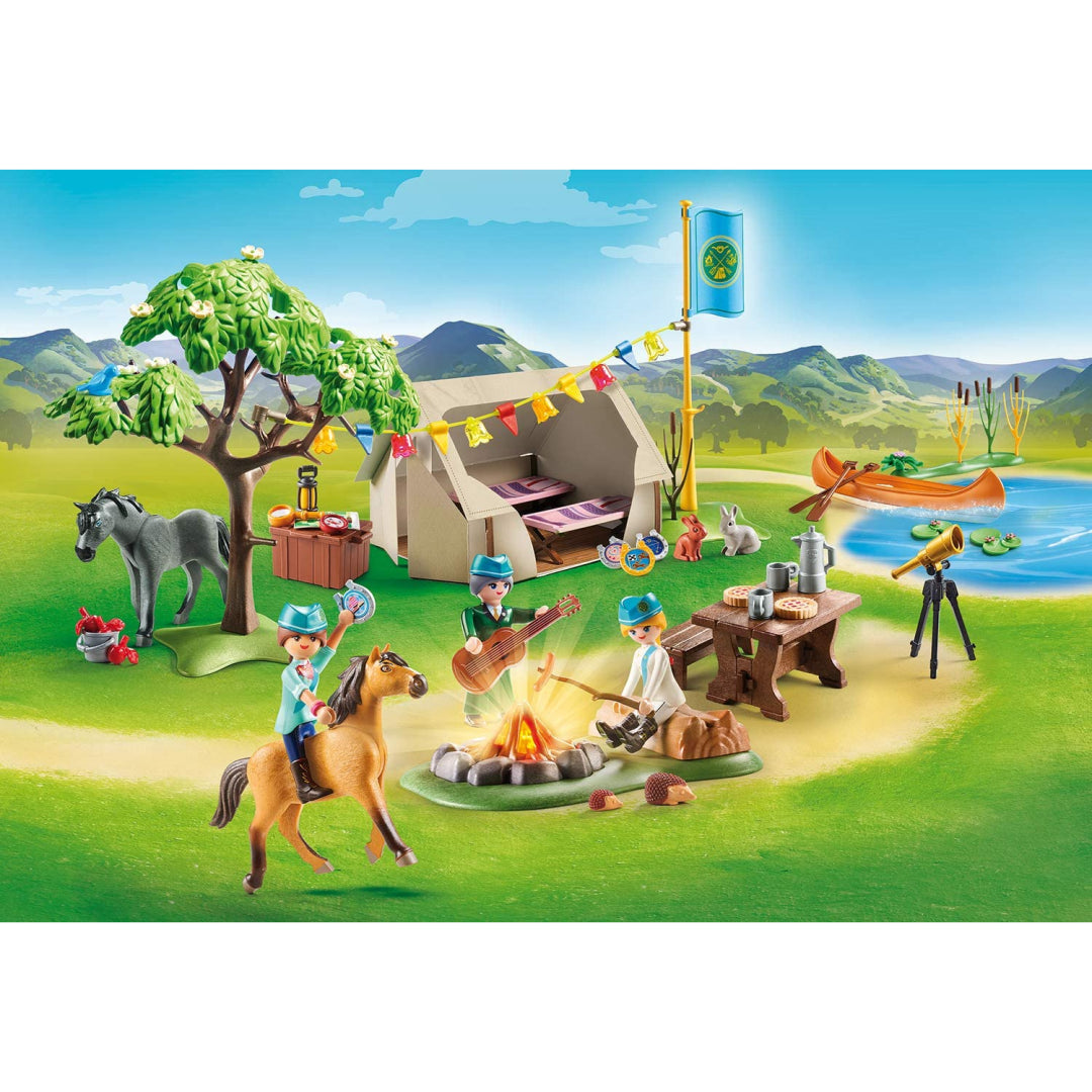 Lucky will need some time to adjust to life in the Wild West after moving from the city to the countryside. It's a huge adjustment for her compared to her life in the city, and she really misses her friends. Shortly thereafter, Lucky befriends Abigail and Prudence, comes into contact with the wild mustang Spirit, and the beginnings of an extraordinary friendship are formed... These characters not only go through thrilling adventures in the PLAYMOBIL Summer Camp, but they also make new friends there, whether it's around the campfire or while they're riding horses. This playset also comes with a badge that can be traded with other people and a collectible bracelet that can be worn.