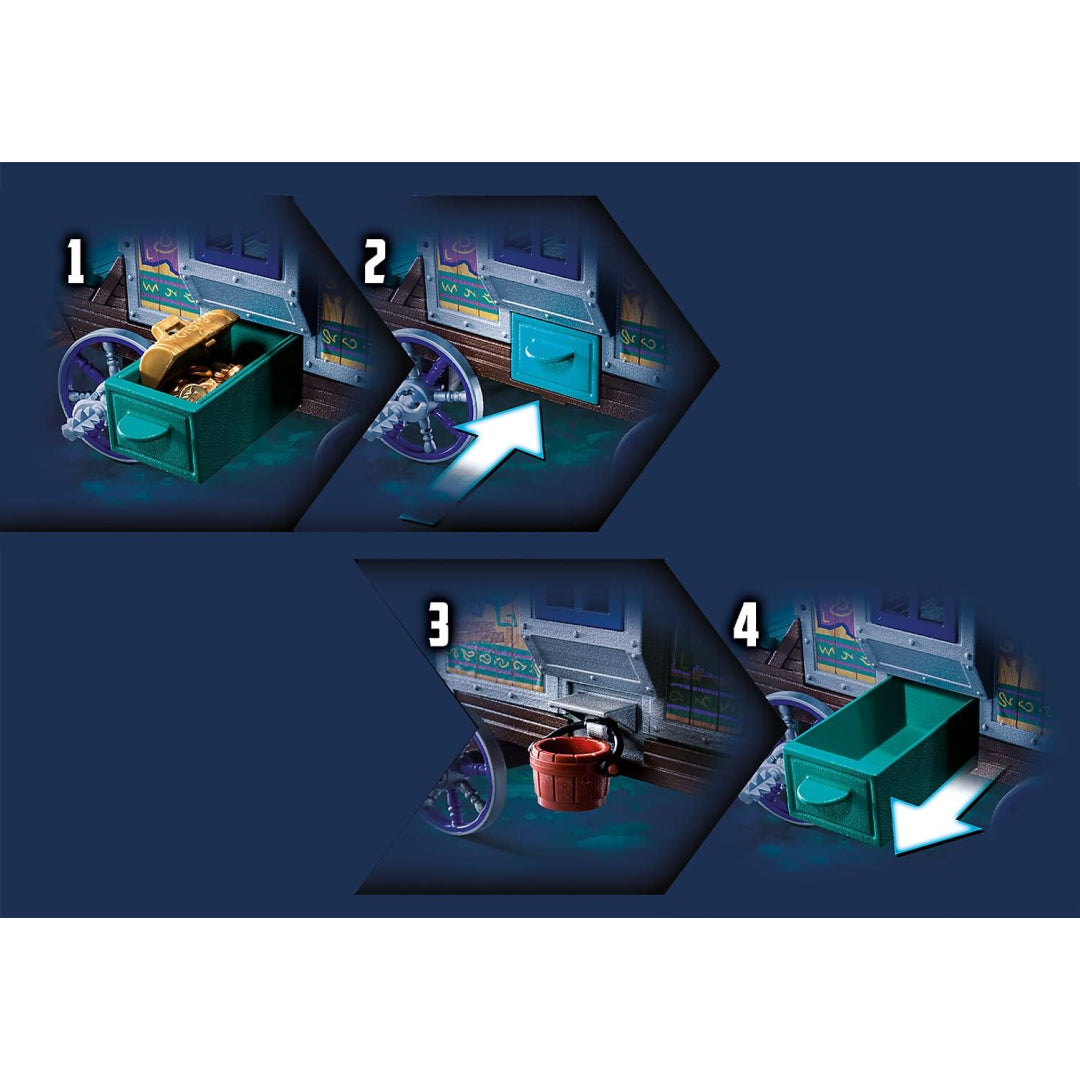 This versatile Playmobil set includes a removable roof, fold-up carriage seat, and a sneaky secret drawer - perfect for hiding magical treasures! The roof-mounted cannon adds extra excitement, either displayed proudly or tucked away for stealth missions. Complete with two horses and 94 accessories, this set offers incredible value for imaginative play.