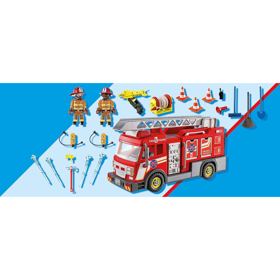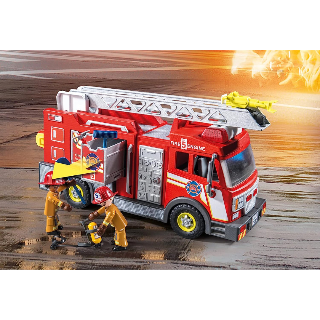Enter the scene quickly and use the Playmobil rescue ladder unit to put out the fire. To guarantee you and your colleagues can reach the fire as quickly as possible, turn on the functioning flashing lights. This will help to clear the roadways. Climb the ladder to incredible heights to release the blazes. Allow your imagination to soar. Two figurines, a fire engine with flashing lights, a ladder, a fire extinguisher, and other accessories are included in the set.