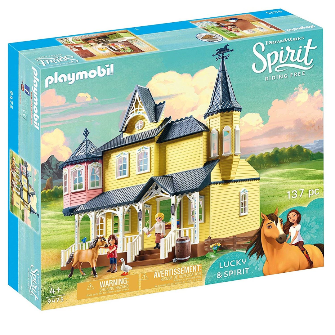 Recreate the inspiring world of dreamworks spirit at home with the Lucky's Happy home playset. The set is complete with a fully-fitted kitchen and a secret hideout, as well as lucky and her wild Mustang, spirit. The set also features Aunt Cora. With lots of accessories included, you'll have everything you need to bring the courageous spirit to life in your very own town of miradero.