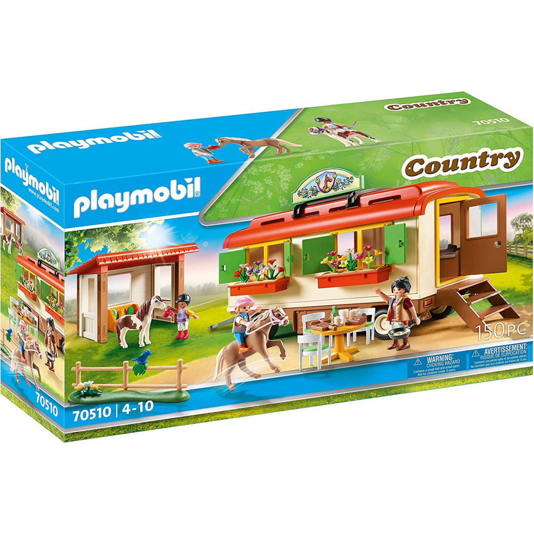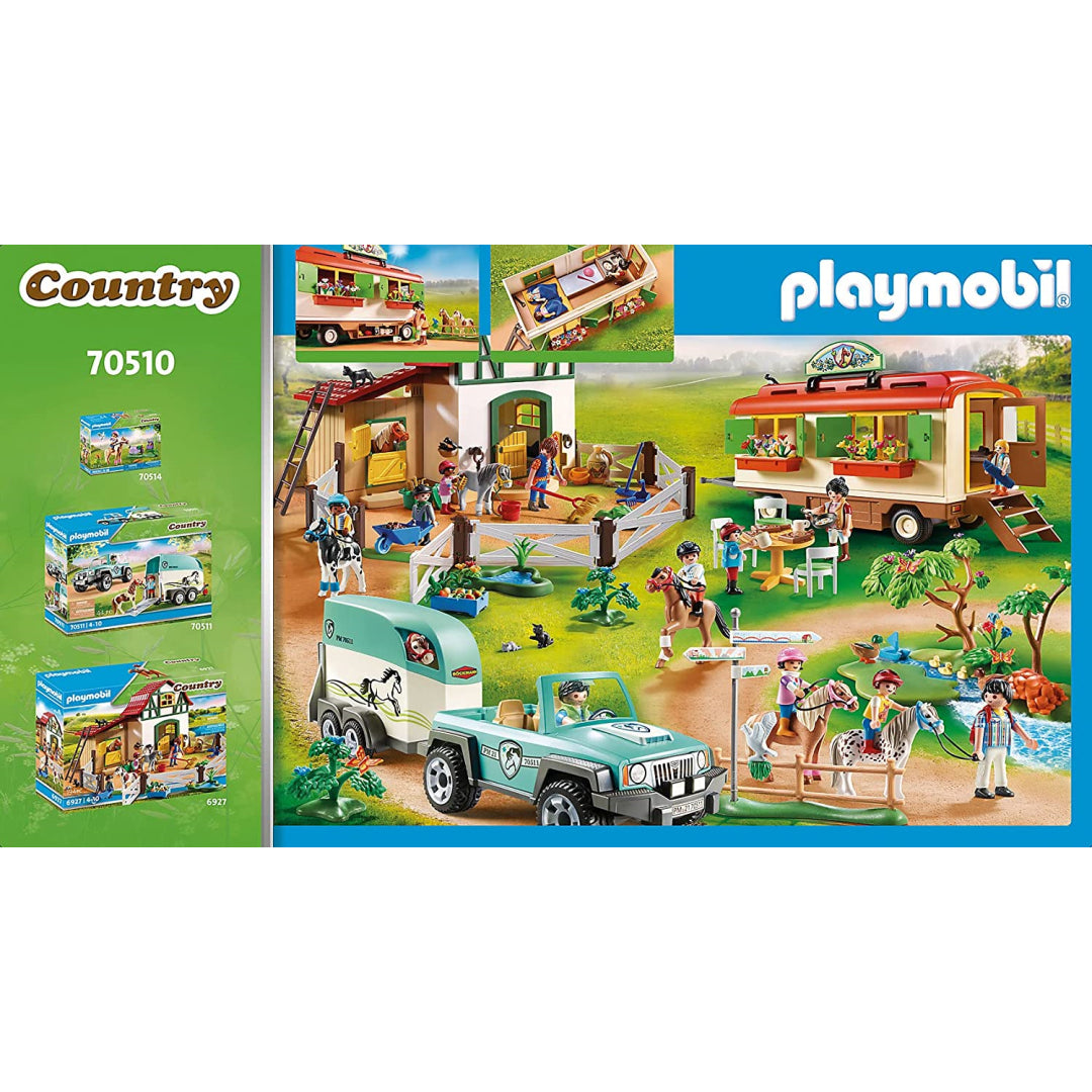 Inside the barn and out in the paddock, young people who are obsessed with horses are oblivious to the outside world. They put in a lot of effort and spare no effort to ensure that the animals have the most pleasant experience possible, particularly when they go on vacation to the pony farm. Both of the young ladies are anticipating that their time spent in the PLAYMOBIL mobile home will be very exciting. The ingenious mobile home is decked out with everything that true equestrians and nature enthusiasts could want. Inside, there is space for cooking and even sleeping in sleeping bags on the hay. In addition, a paddock with a shelter has been prepared for the two ponies so that they can live right next to the caravan. Riding, feeding, cleaning stalls, and grooming can now commence; the holidays have officially begun! Girls and boys of all ages can let their imaginations run wild while playing with the exciting farm that features realistic PLAYMOBIL horses and a lot of small details.