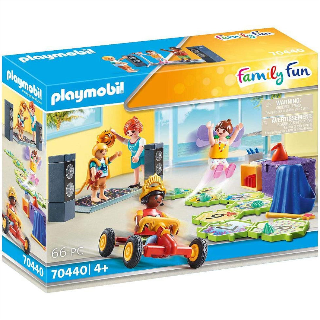Finally leaving today for their vacation at the PLAYMOBIL Beach Hotel, where the kids can't wait to play in the PLAYMOBIL Kids Club, is the PLAYMOBIL family. Here, kids may meet new people, have a great time playing games, dressing up in costumes, dancing and singing at the mini-disco, bouncing on the bouncy box, and riding the pedal vehicle. There is no doubt that the Kids Club will keep the small visitors entertained at all times.