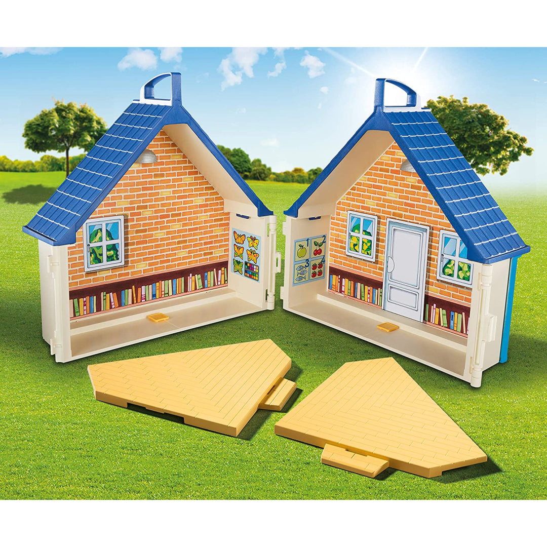 This kit, which comes in a handy carrying box, is ideal for fun when travelling. Simply open the two sides, fold the floor plates down, and you'll see a classroom with a blackboard, school tables, and eager learners within. Get ready for a fun-filled day of learning as you complete reading exercises and answer arithmetic problems after the instructor has collected the previous night's homework assignment!