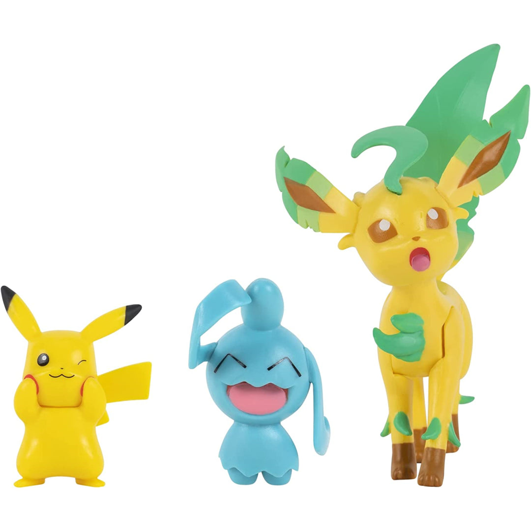With this Pokémon Battle Figure 3 Pack, you can unleash the power of electricity, your thoughts, and the grass around you! Prior to joining forces with the Psychic-type Wynaut, you should get some practise with the Electric-type Pikachu. Send out the Grass-type Leafeon when the fight is about to begin, and dynamically posture the Pokémon's movable limbs to impress your opponents. Clip 'N Go Poké Ball, Carry Case Playset, and Surprise Attack Game are all compatible with the 2-inch Pokémon figures. These incredibly accurate miniatures have the appearance of having been taken straight from the Pokémon animated series.