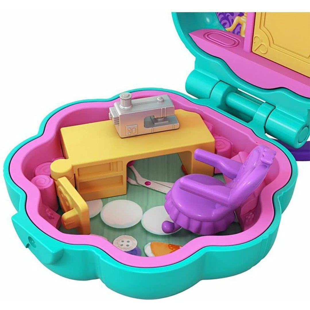 Polly Pocket Tiny Pocket Places Picnic Compact makes Tiny Mighty take on whole new meaning! Lila doll is ready for studio fun making and modelling clothes! Open the compact to reveal a studio location with a secret surprise supply cabinet and closet door that opens, too. There's also an area with a caboodle, desk, chair and sewing machine. Includes micro Lila doll, studio compact and accessories. Compact has a ring attached so girls can clip it on backpacks, purses and more.