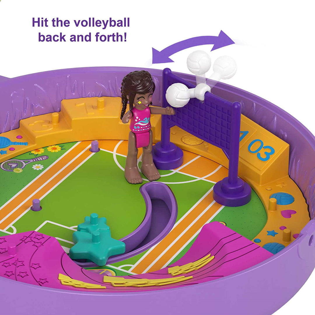 Peg one of the dolls to the rock climbing wall, fold down the swimming pool to run laps, shoot basketball hoops, slide the volleyball back and forth across the net, and open the cooler for a treat to discover and act out the tale fun. For unlimited play options, place pieces in different locations of the compact. The compact also has a wristlet strap, so youngsters can carry it with them on the road for Polly Pocket adventures whenever and wherever they choose!