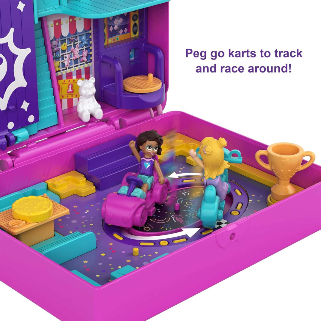 Get ready for non-stop gaming fun with this amazing Polly Pocket Race & Rock Arcade Compact! Perfect for those quick entertainment moments between homework and playtime, this compact arcade world unfolds to reveal five exciting activities your little ones will love. The outer window sparkles with shimmering glitter, setting the stage for endless gaming adventures.