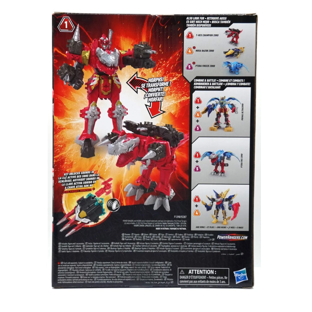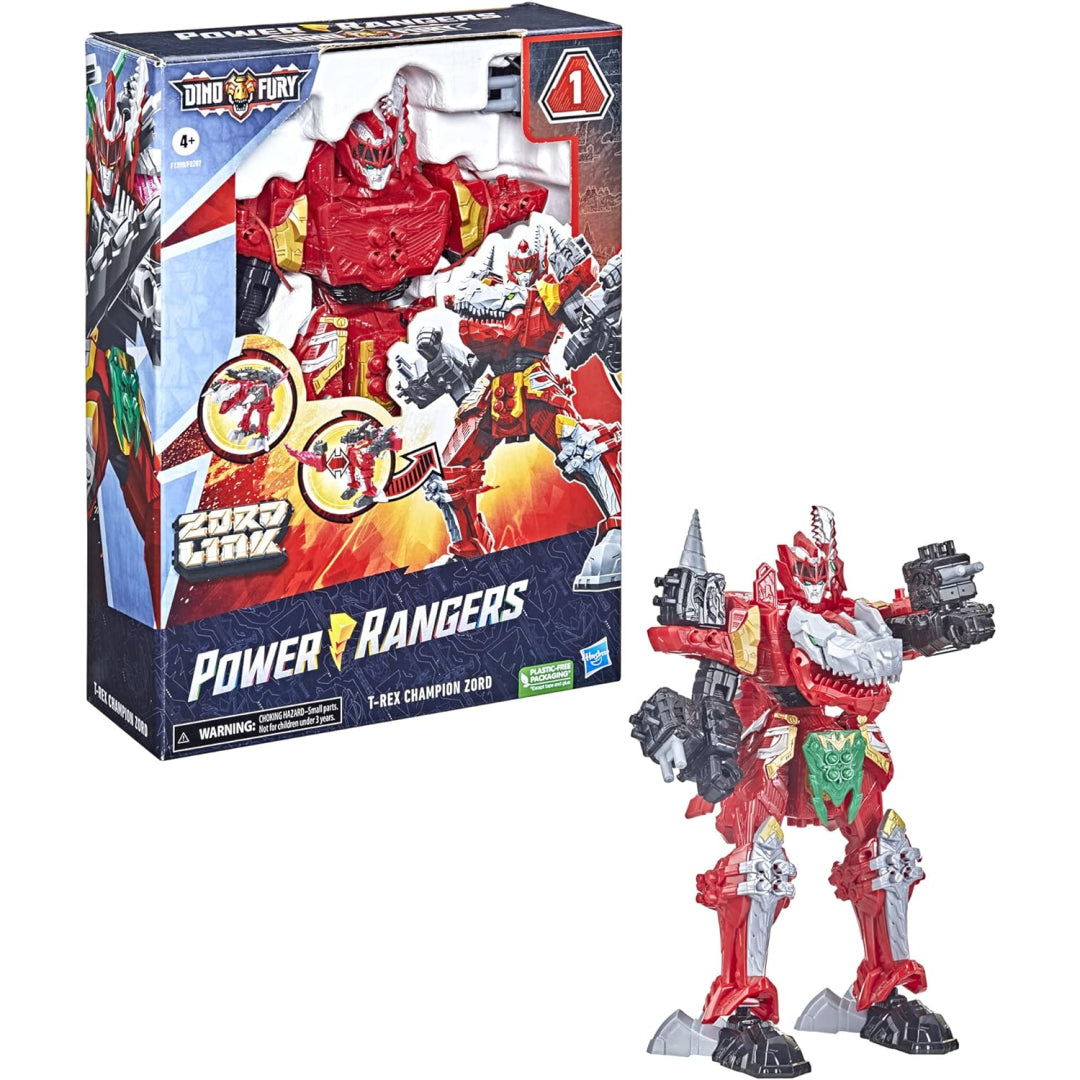 With the Zord Link connections, children may construct their own Megazord formations by combining Zord figurines and experimenting with series-inspired designs. The Dino Fury Morpher compatible Dino Fury Key allows the Zord Action Figure to transform from T-Rex to Battle Mode.