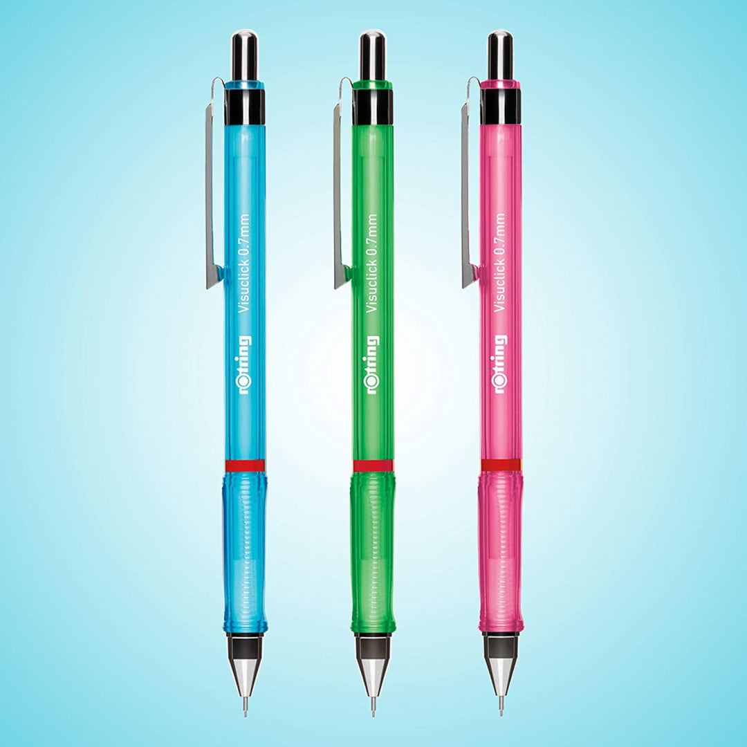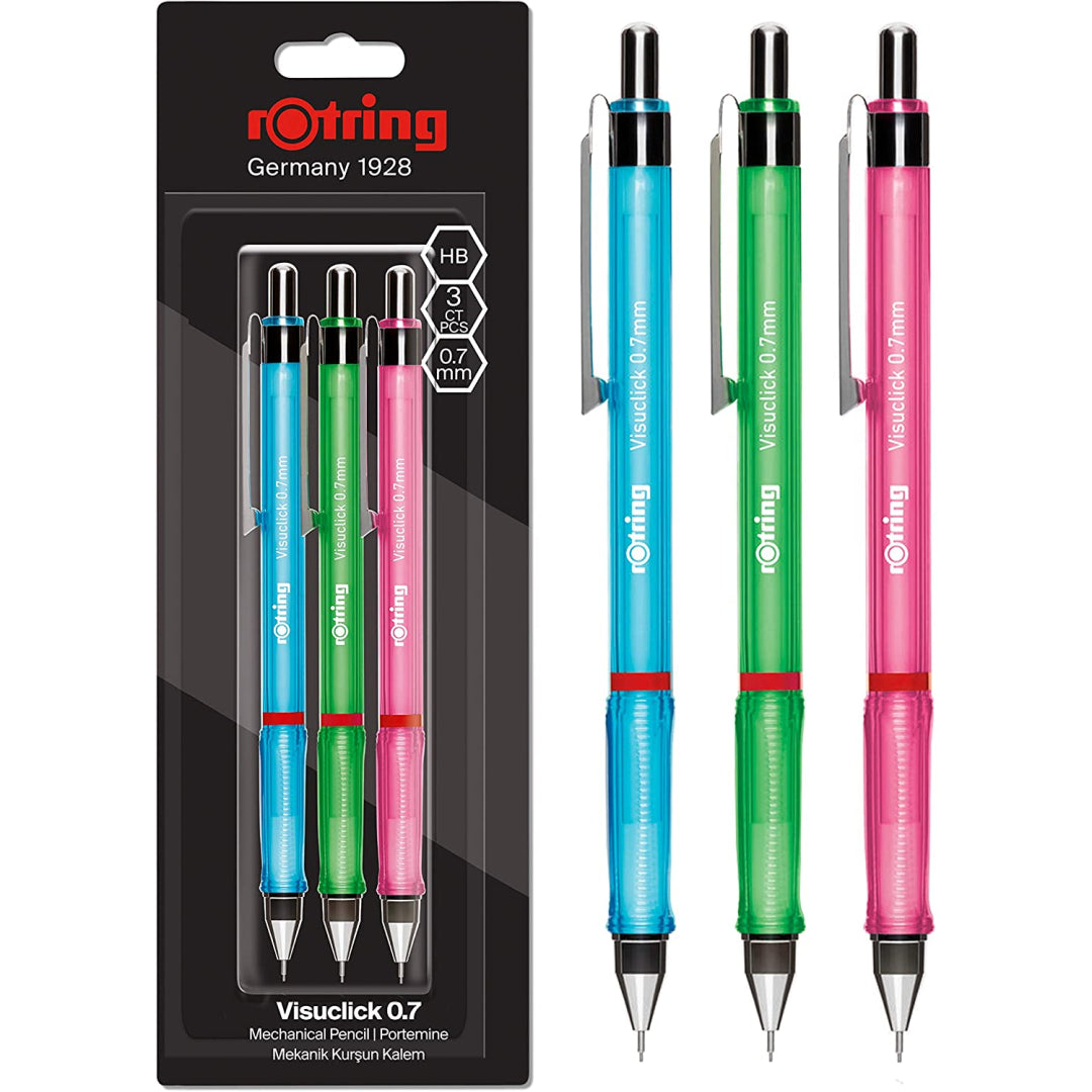 Get ready to add some pizzazz to your creative time with these funky Rotring Visuclick mechanical pencils! Perfect for busy mums and kids alike, this triple pack of mechanical pencils comes in eye-catching pink, green, and blue - making homework and drawing time much more exciting. The clever triangular grip means comfortable writing for little hands (and grown-up ones too!), while the 0.7mm 2B lead delivers smooth, bold lines perfect for both writing and sketching.