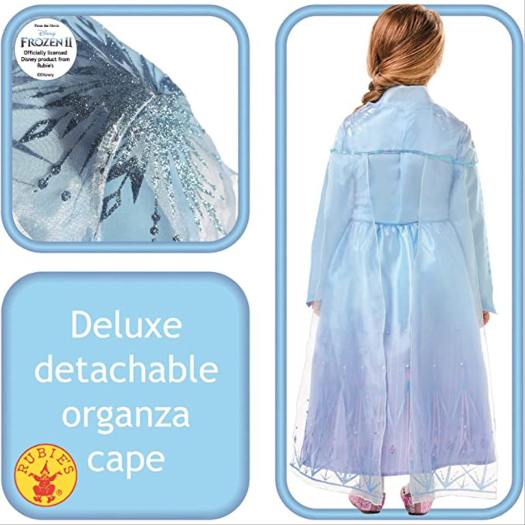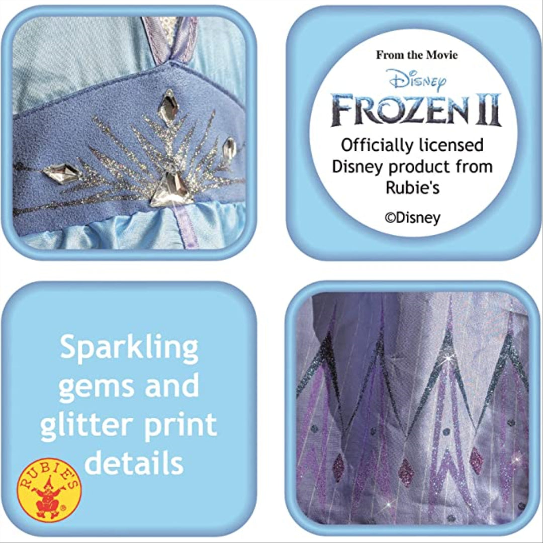 Rubie's is proud to present an officially licenced Disney Frozen 2 product. Dress is made of blue taffeta and has a sequin detail on the bodice. The skirt has shimmering glitter detail and the cape is made of organza. Please make sure that your Rubie's product, which is an official Disney Frozen 2 product, arrives in the packaging that is branded as belonging to Rubie's. Officially licenced product from Rubie's that has been tested to meet or exceed all applicable European and UK standards, including EN71 and Reach.