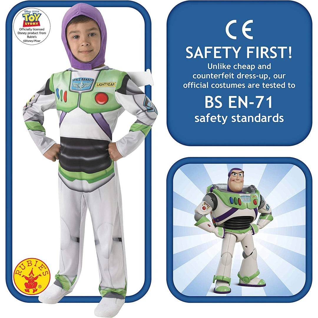 Blast off into incredible savings with this officially licensed Rubie's Buzz Lightyear costume! Perfect for busy families who want maximum playtime value, this complete costume set includes a printed jumpsuit with iconic space ranger wings and a snood. Let your little star command trooper join the Universe Protection Unit in style while you enjoy the peace of mind that comes with Rubie's trusted quality and durability.