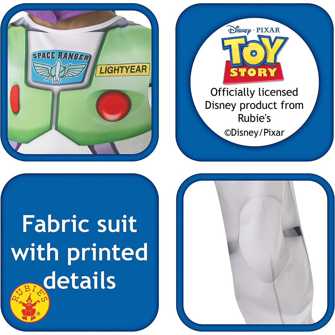 Please report to "Star Command!" Position yourself as one of Andy's favourite action figures and report for duty! Our Toy Story hero is prepared to take you to infinity and beyond; take the Universe Protection Unit to the Zeta Quadrant and look for the Little Green Men. A printed jumpsuit with wings and a snood are included in the official Buzz Lightyear licenced costume.