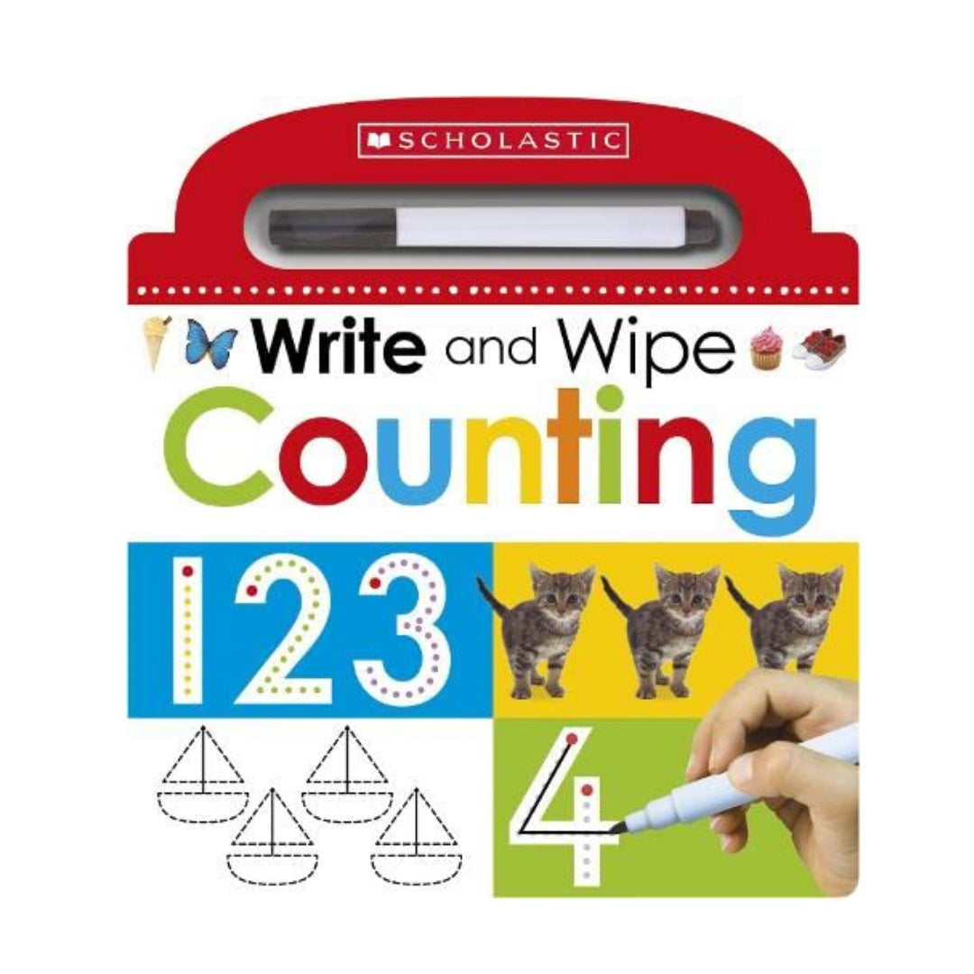 Write and Wipe Counting teaches youngsters how to write numbers by providing them with things to count as well as tracing activities for both the numeric and the word associated with the number.